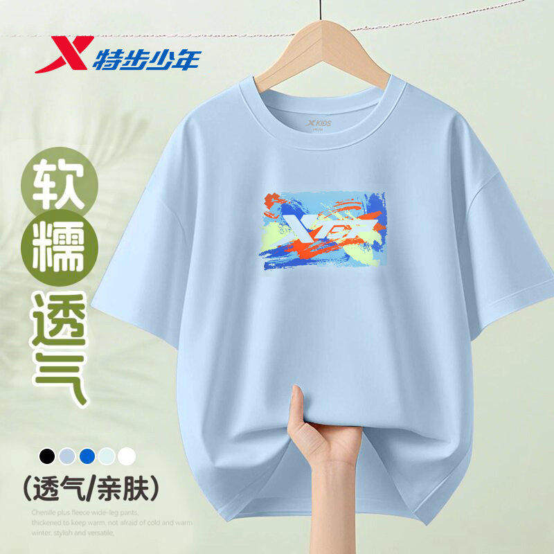 特步女童短袖T恤夏季透气新款儿童休闲半袖青少年女孩运动速干衣