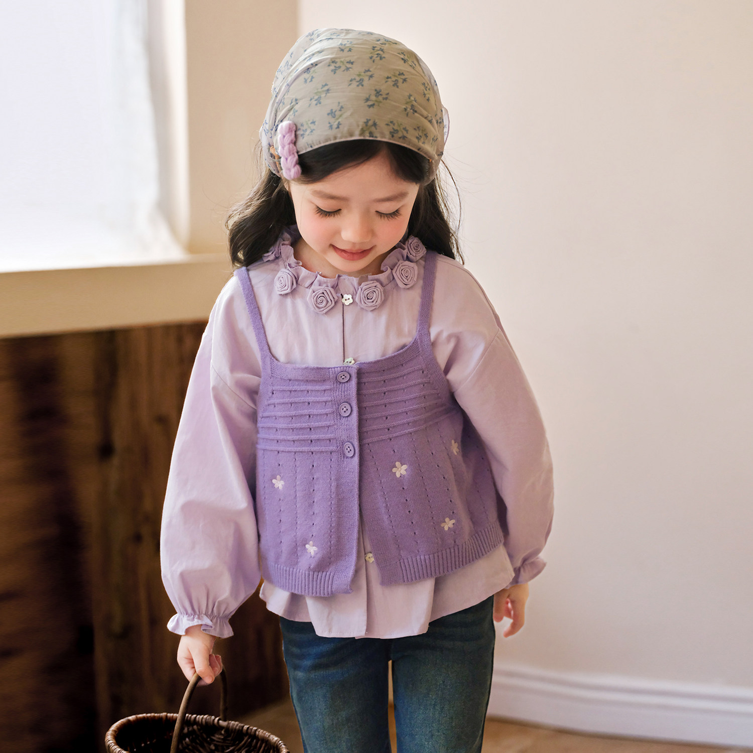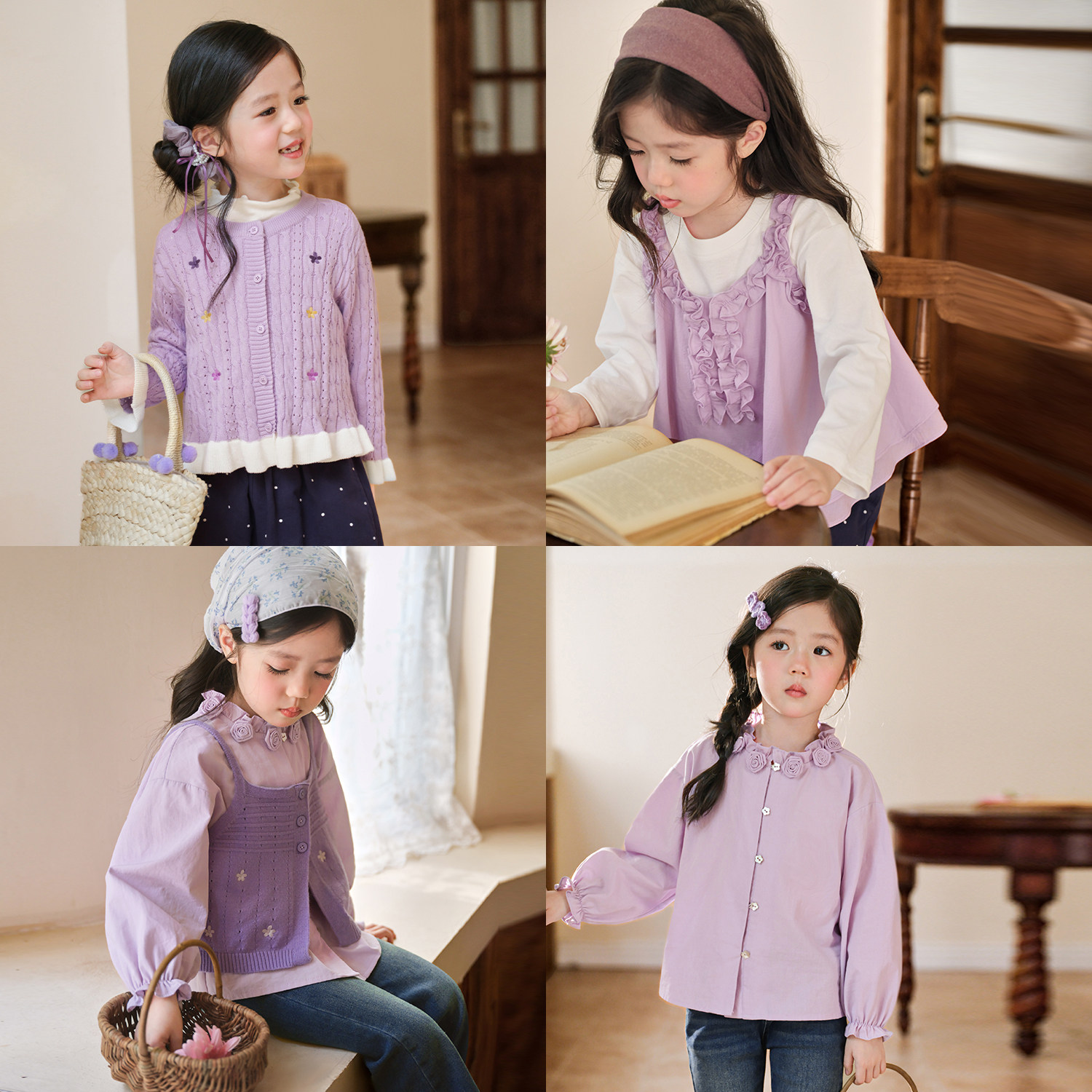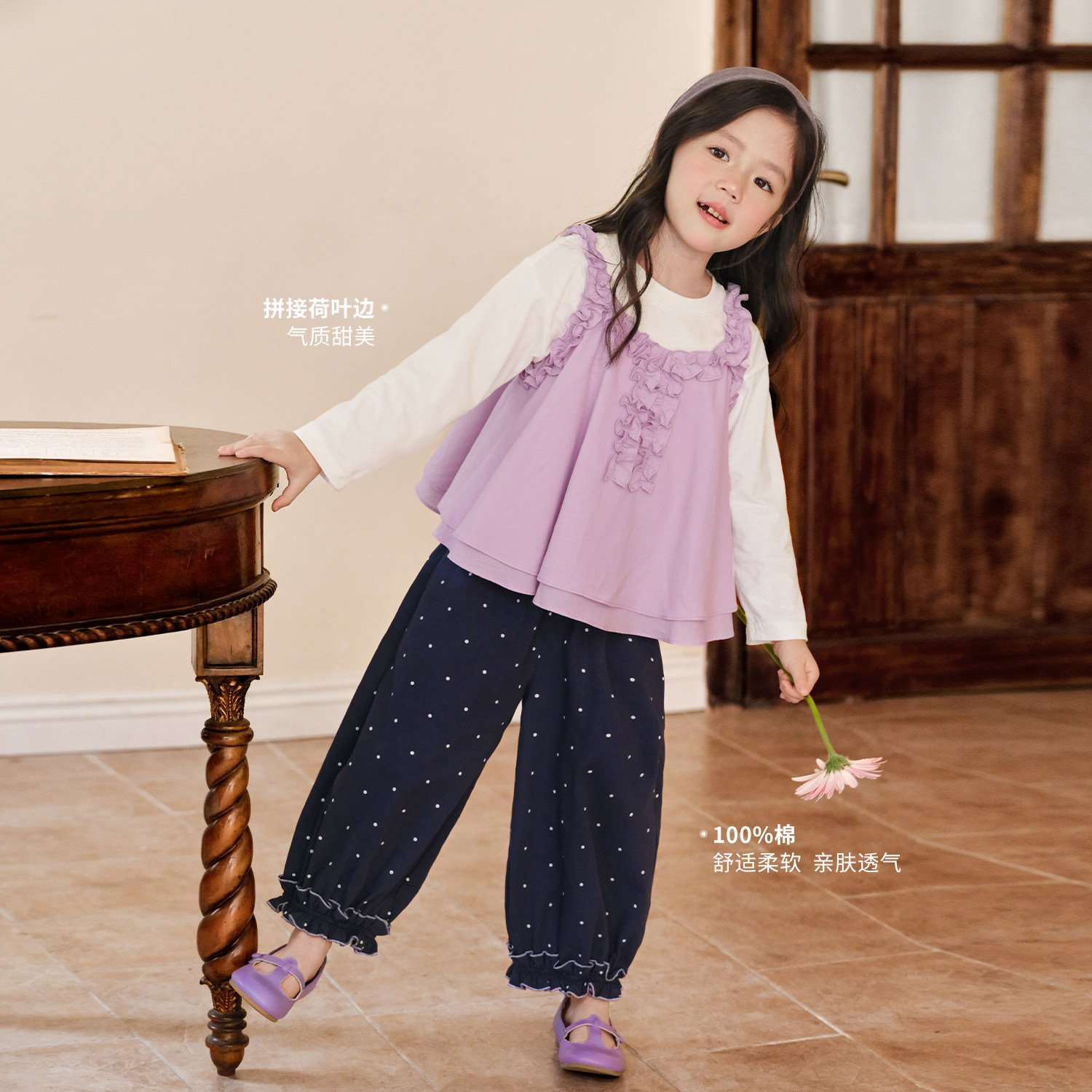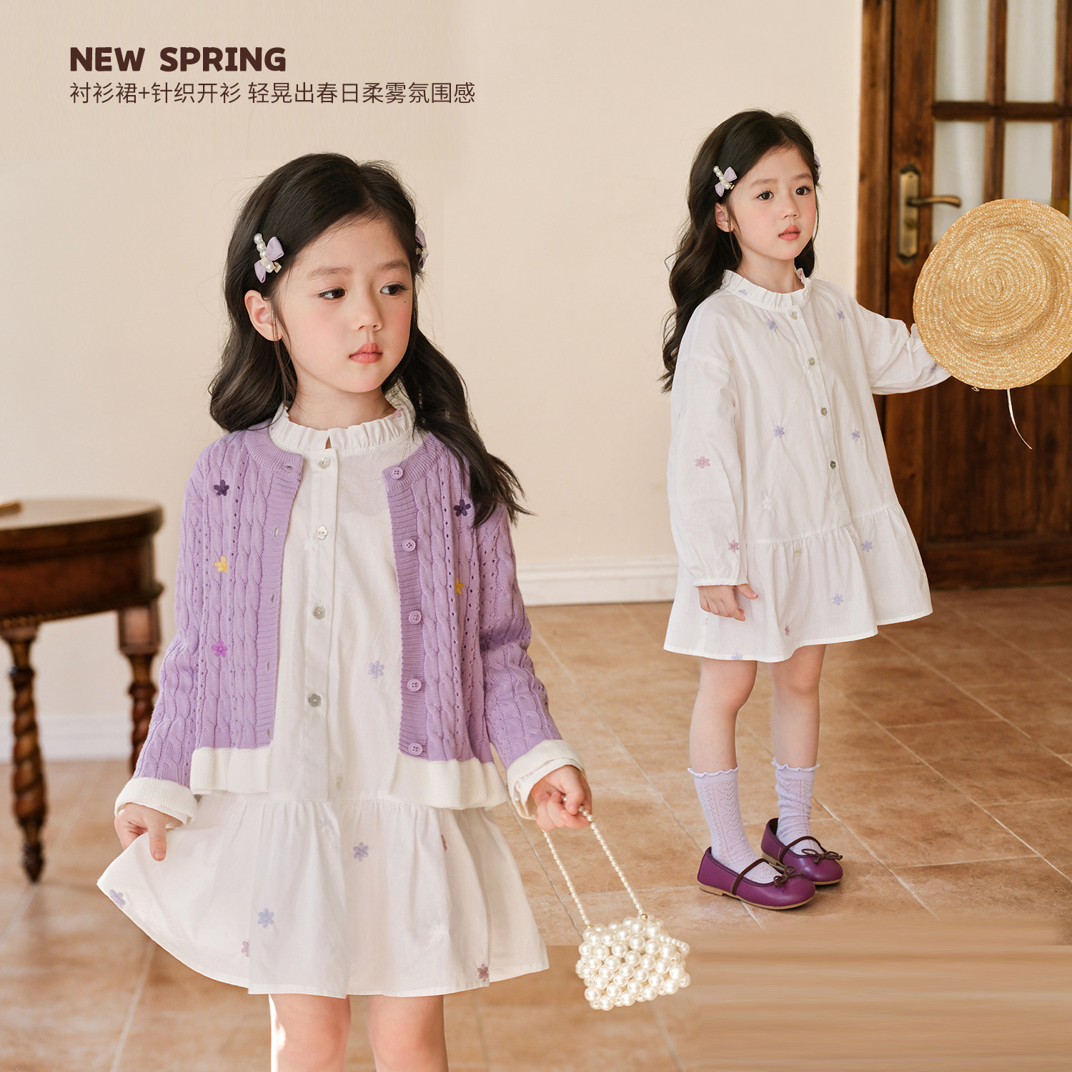 小O宝童装 宝宝紫色春装套装女花朵2026新款女童时髦洋气套装裙
