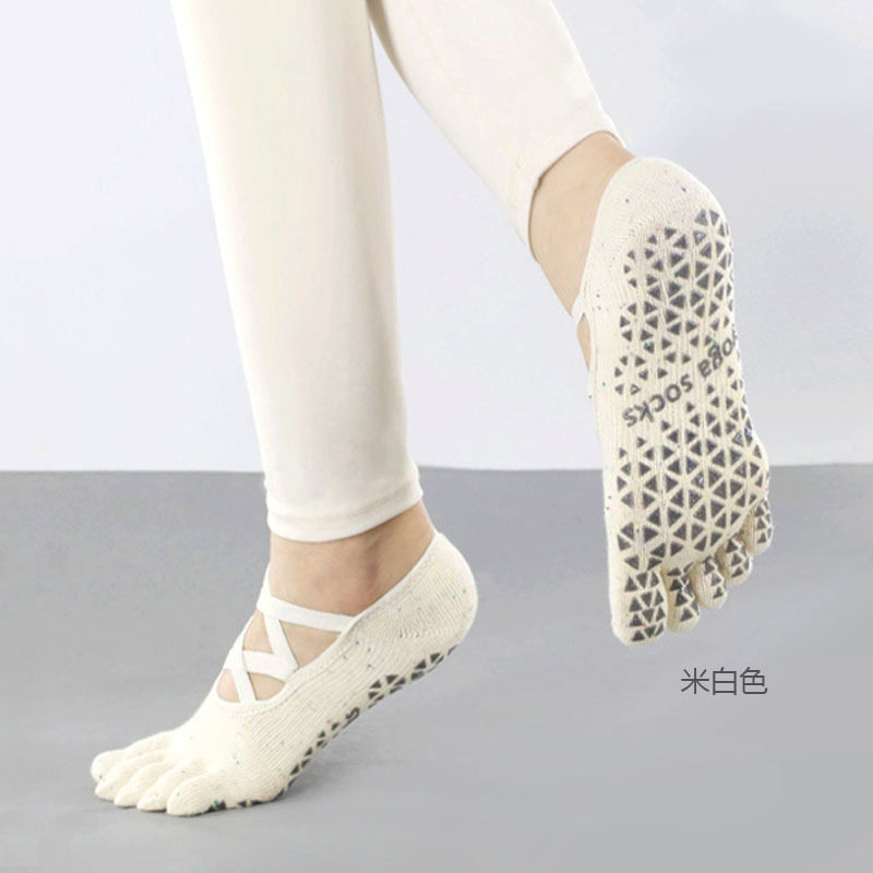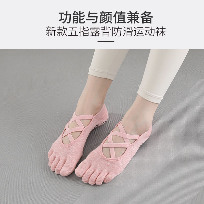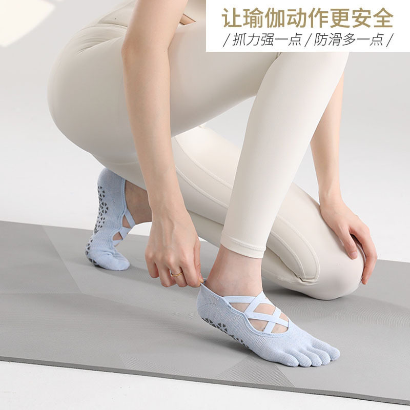 白色运动瑜伽袜夏天薄款五指袜吸汗透气普拉提袜防滑分指绑带袜子