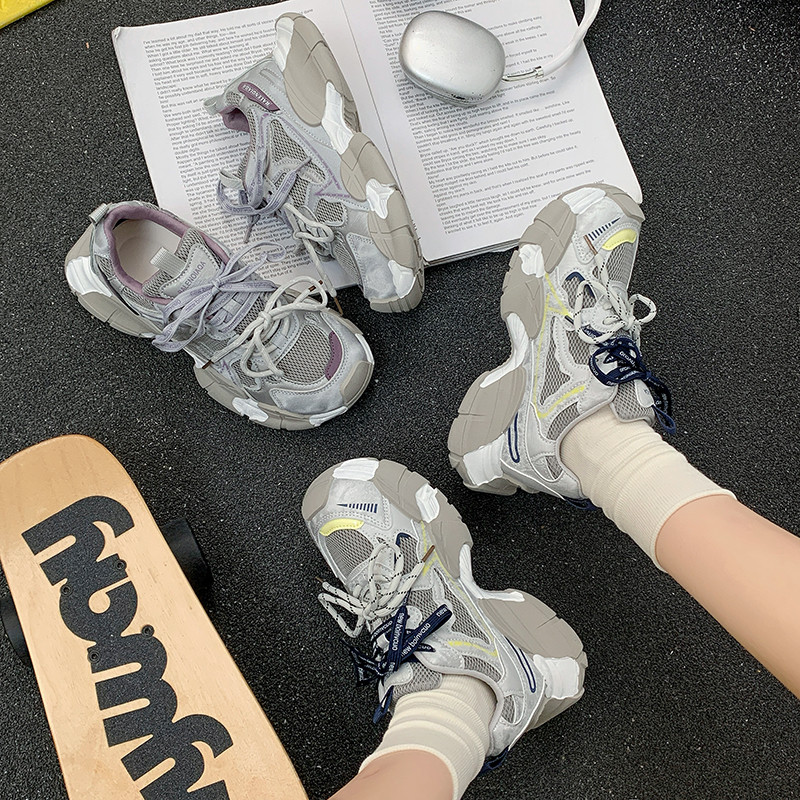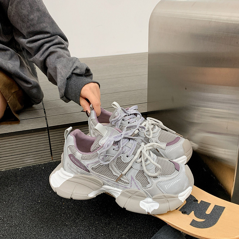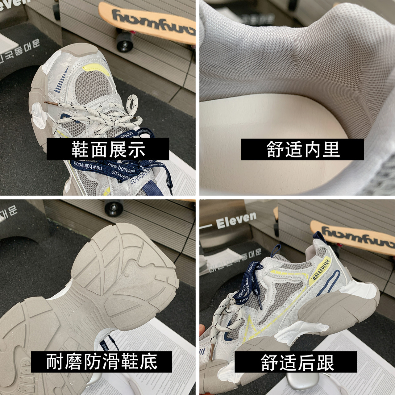 厚底增高老爹鞋女2026春季新款网面透气系带显脚小百搭休闲运动鞋