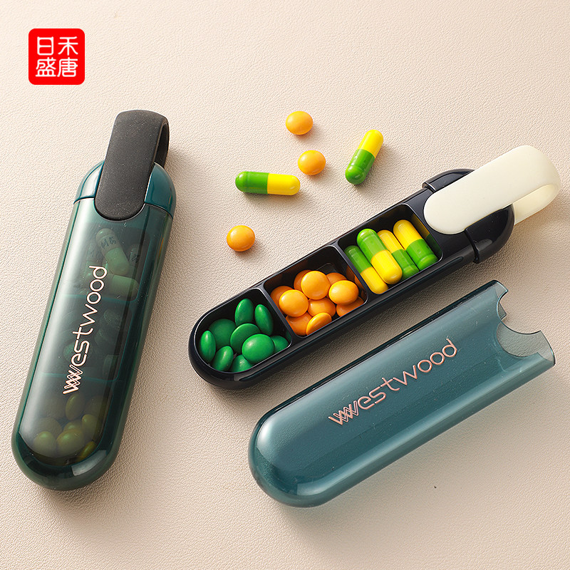 便携式药盒老人随身小号携带家用药丸收纳三格分装盒一日分格防潮