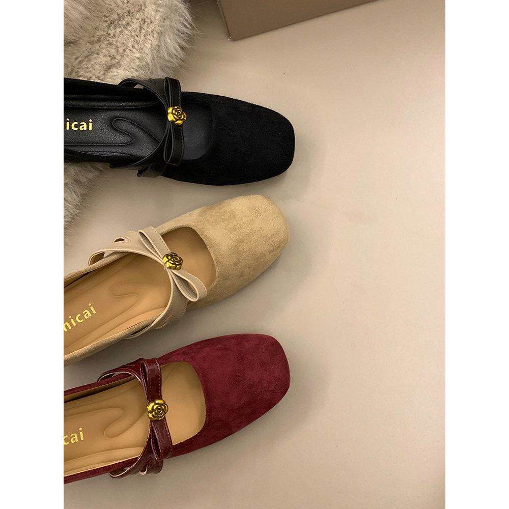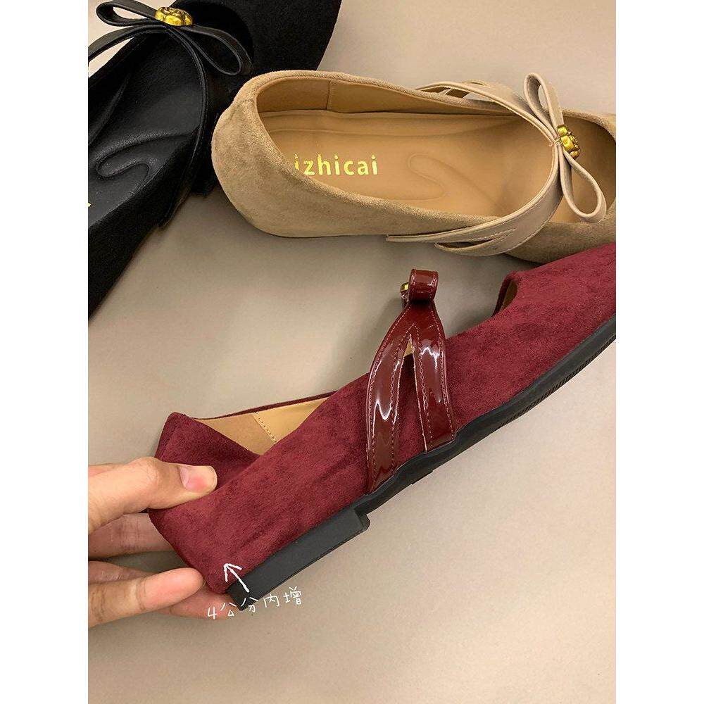 内增高绒面山茶花一脚蹬玛丽珍鞋2026年新款复古封红色单鞋女百搭