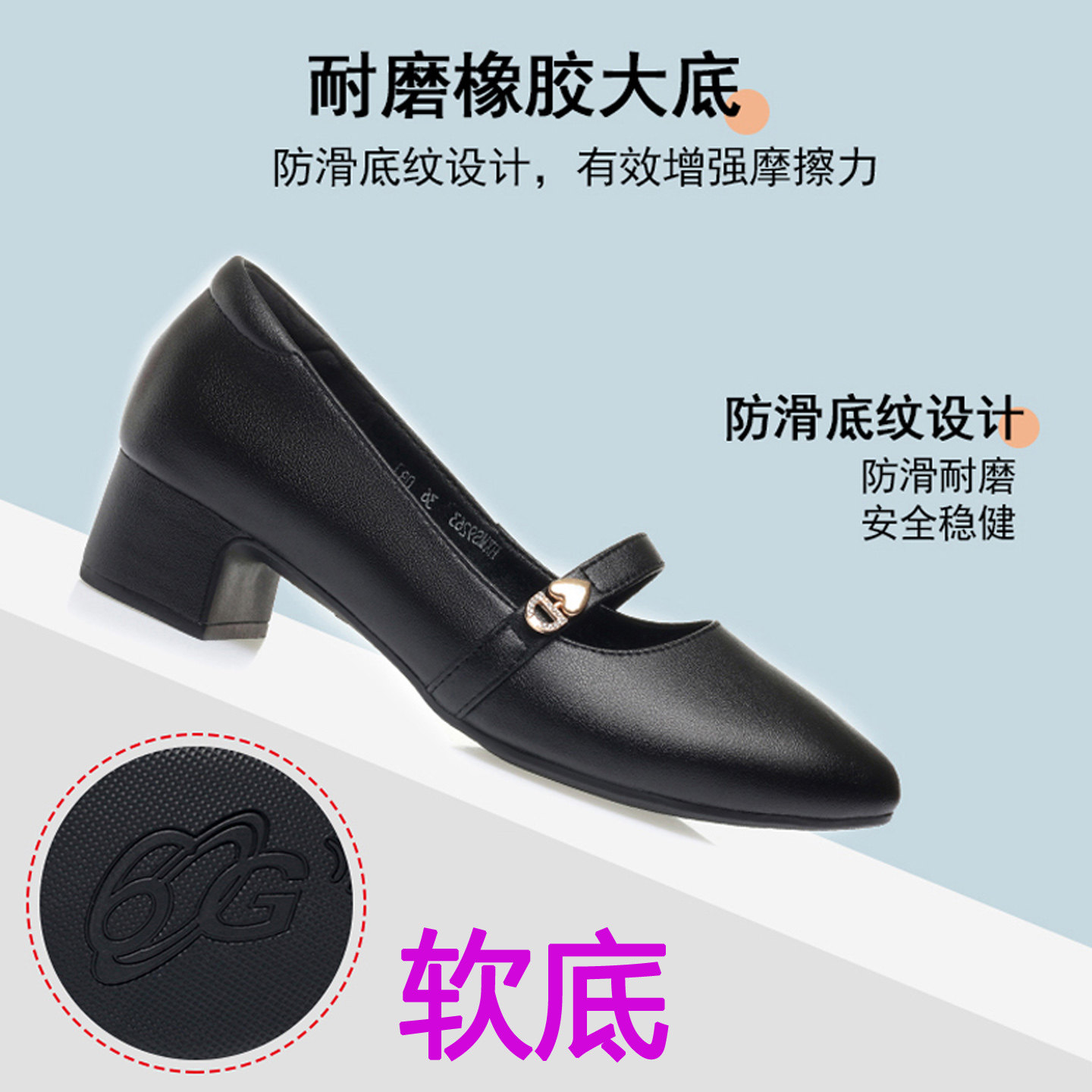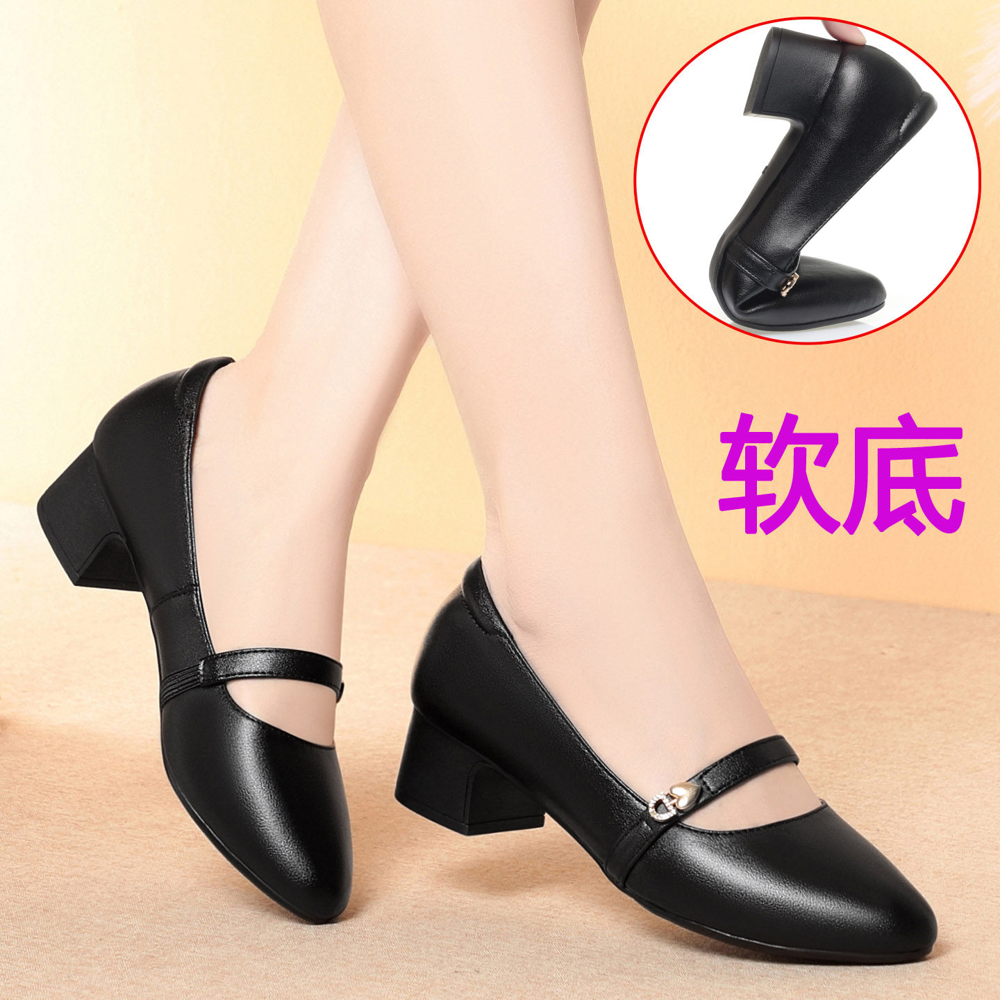 中老年真皮软底妈妈鞋子中跟单鞋粗跟不累脚女鞋软皮女士黑色皮鞋