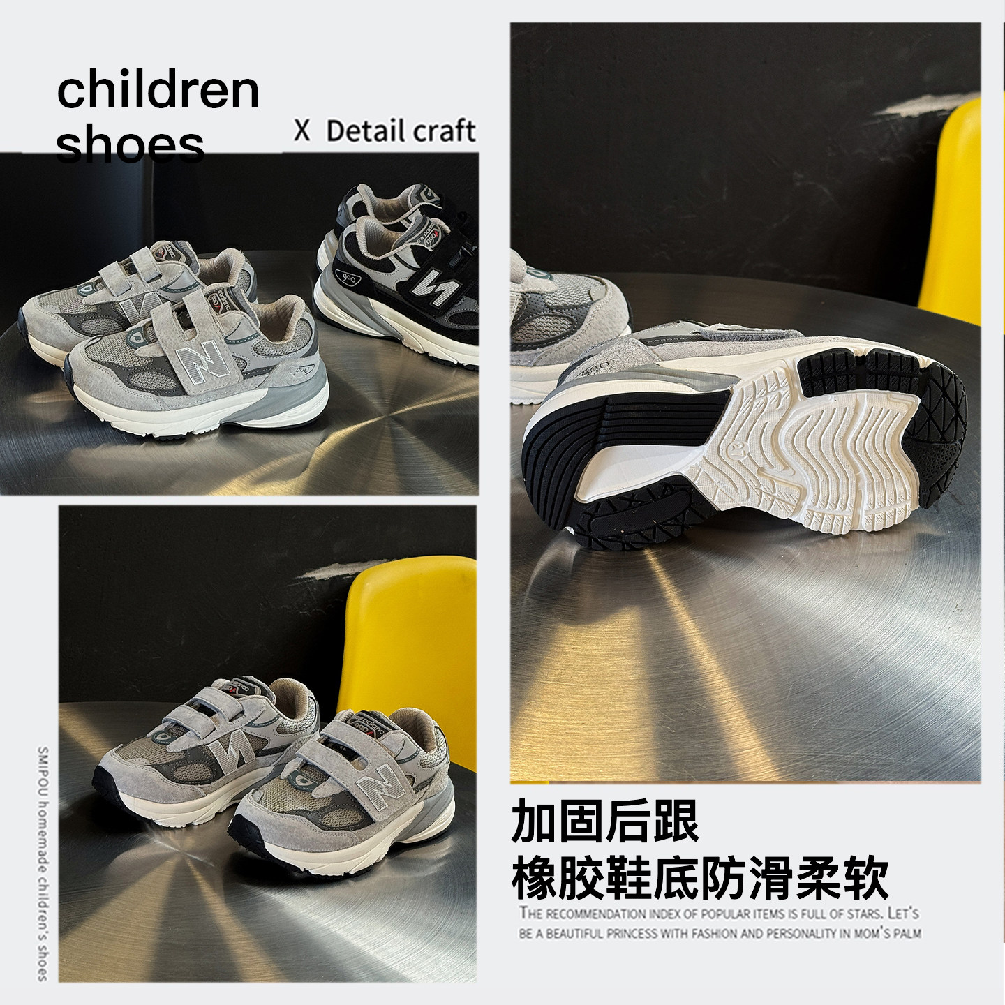 魔术贴儿童运动鞋女童跑步鞋轻便透气减震2026秋季男童N字童鞋990