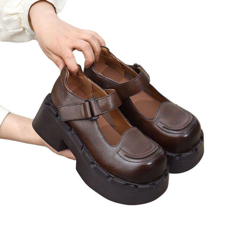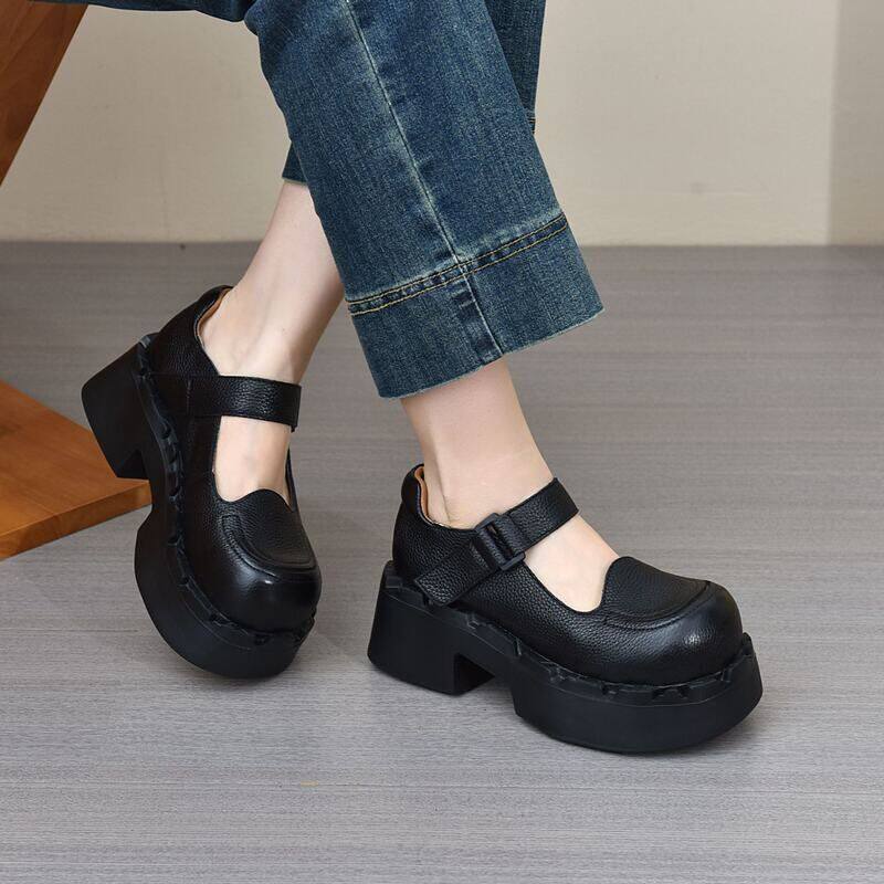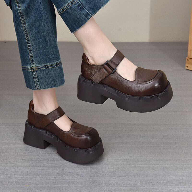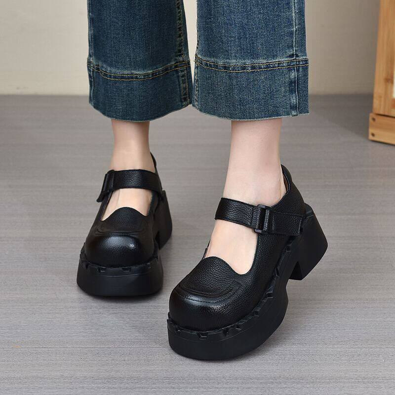 龍林春夏外穿高级感真皮厚底松糕女鞋包头凉鞋头层牛皮复古凉鞋女