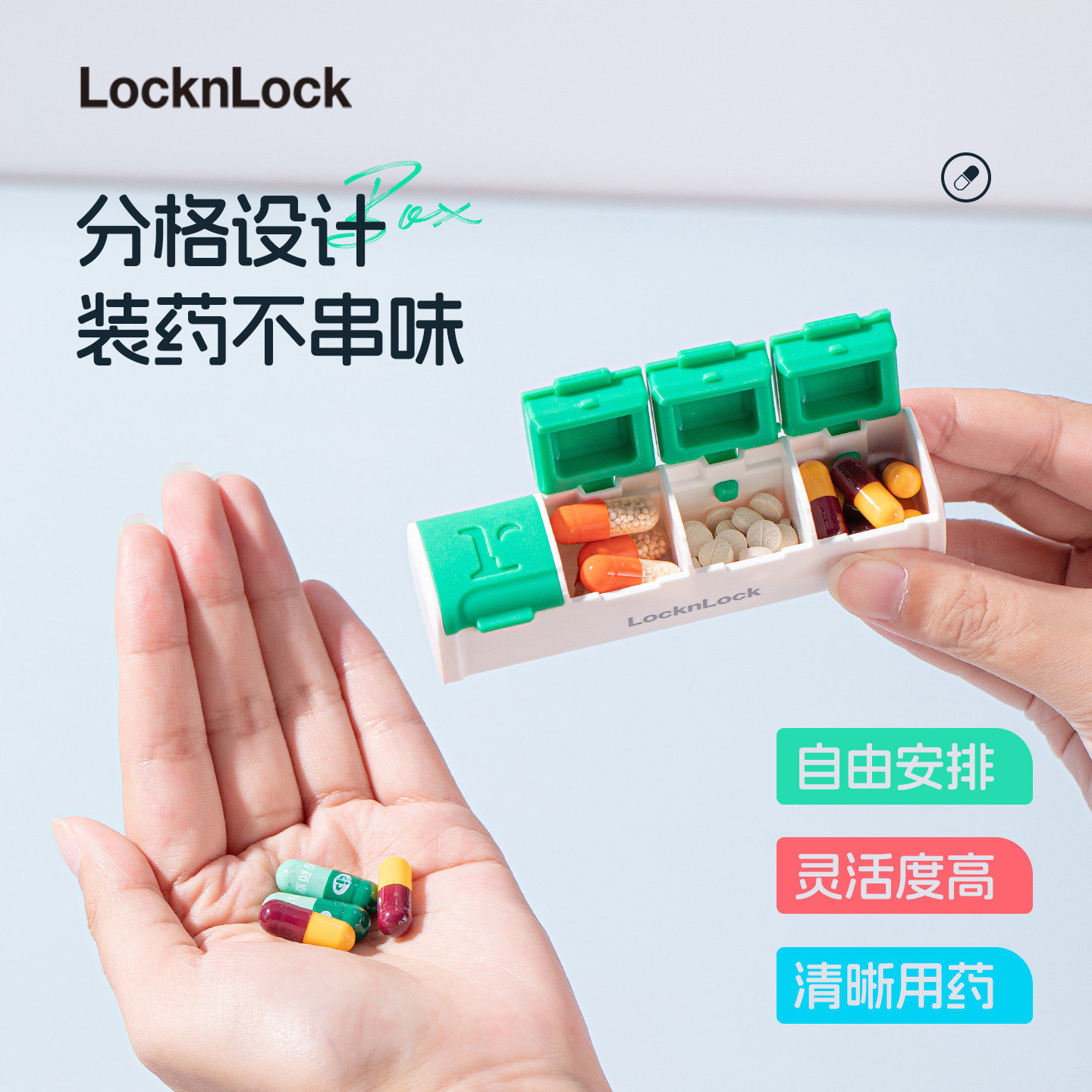 乐扣乐扣药盒随身迷你便携收纳物分装小药品七天食品避光便携式格