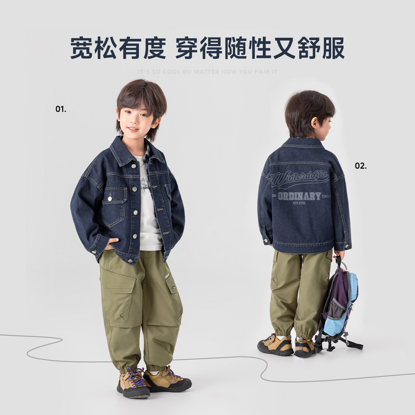 多多家男童牛仔外套2026春秋款新款儿童中大童印花牛仔服上衣春装