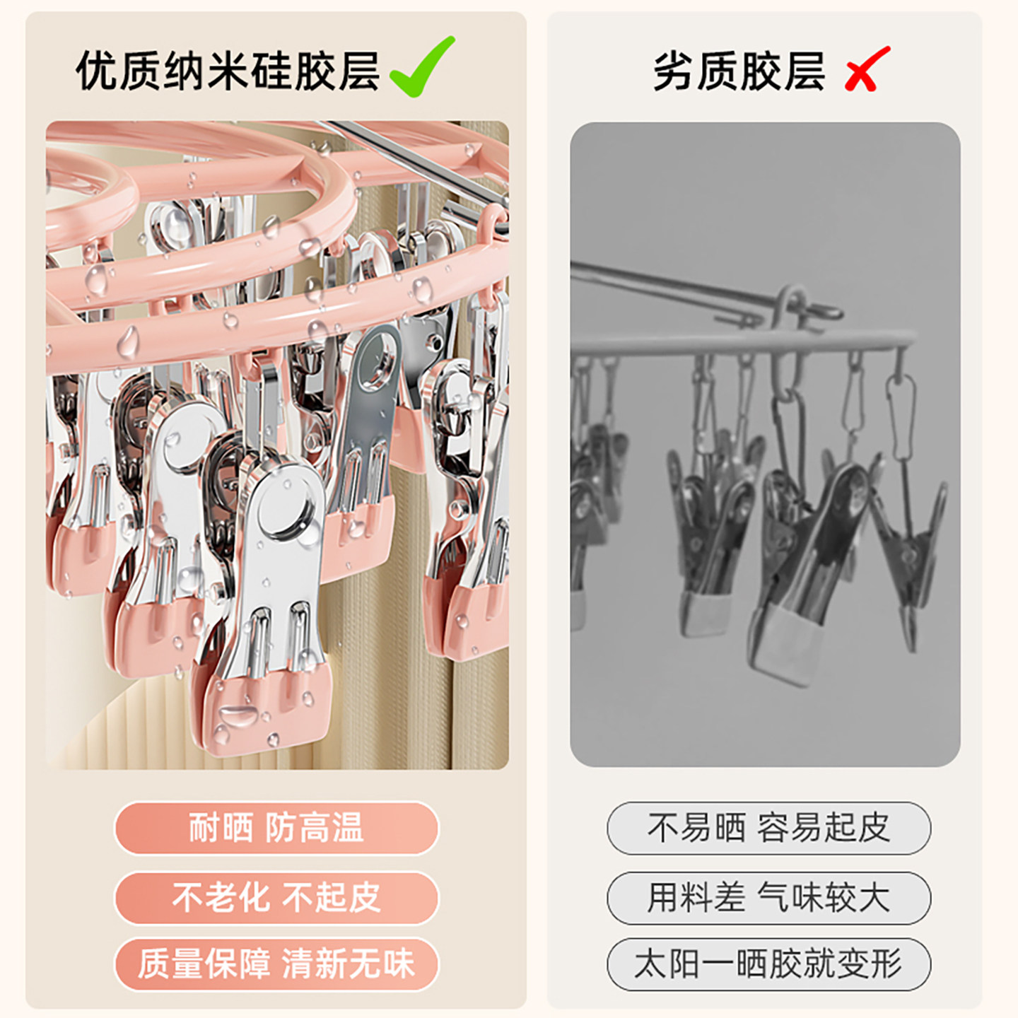 袜子晾晒架不锈钢晾衣夹阳台家用多夹子多功能衣架晒袜子内衣神器