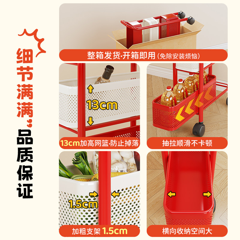 【李佳琦直播间】厨房夹缝置物架缝隙小推车冰箱侧收纳架家用客厅