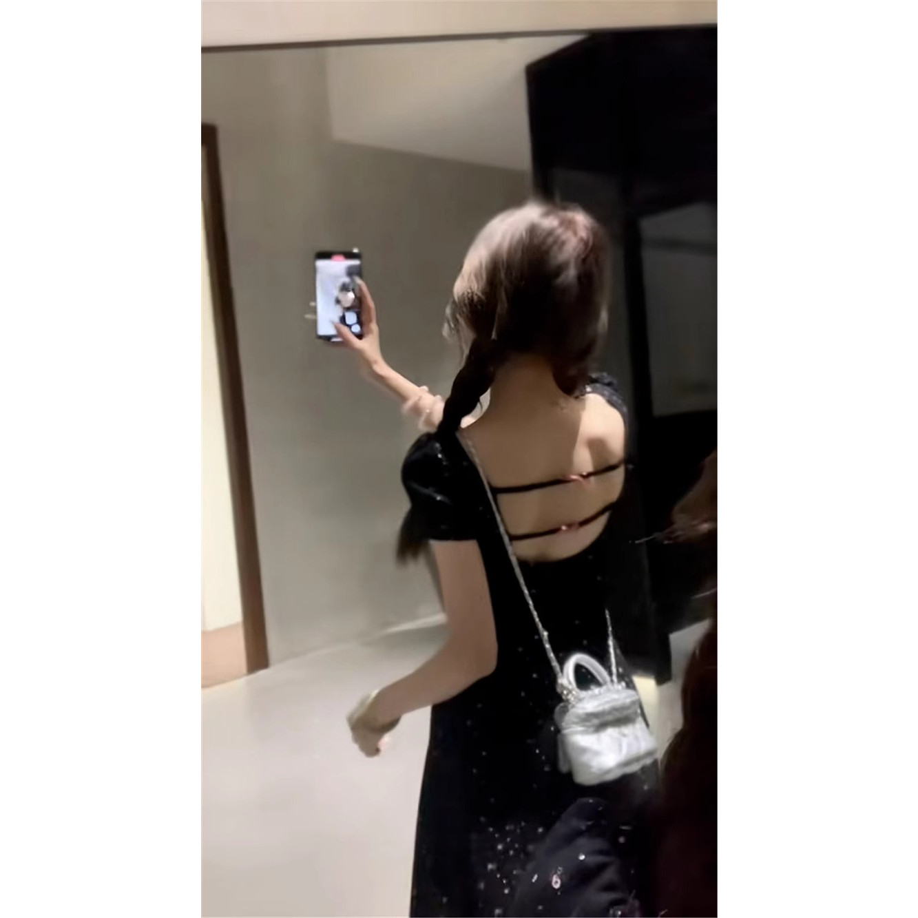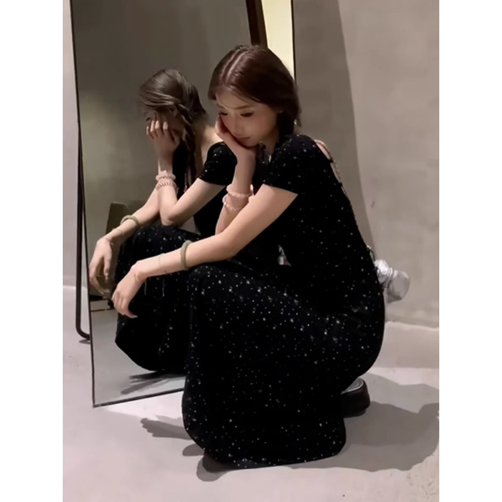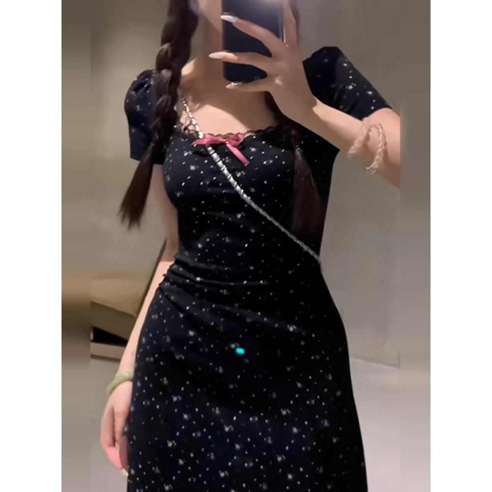 小个子夏季穿搭气质高级感碎花连衣裙子女装2026新款黑色显瘦长裙
