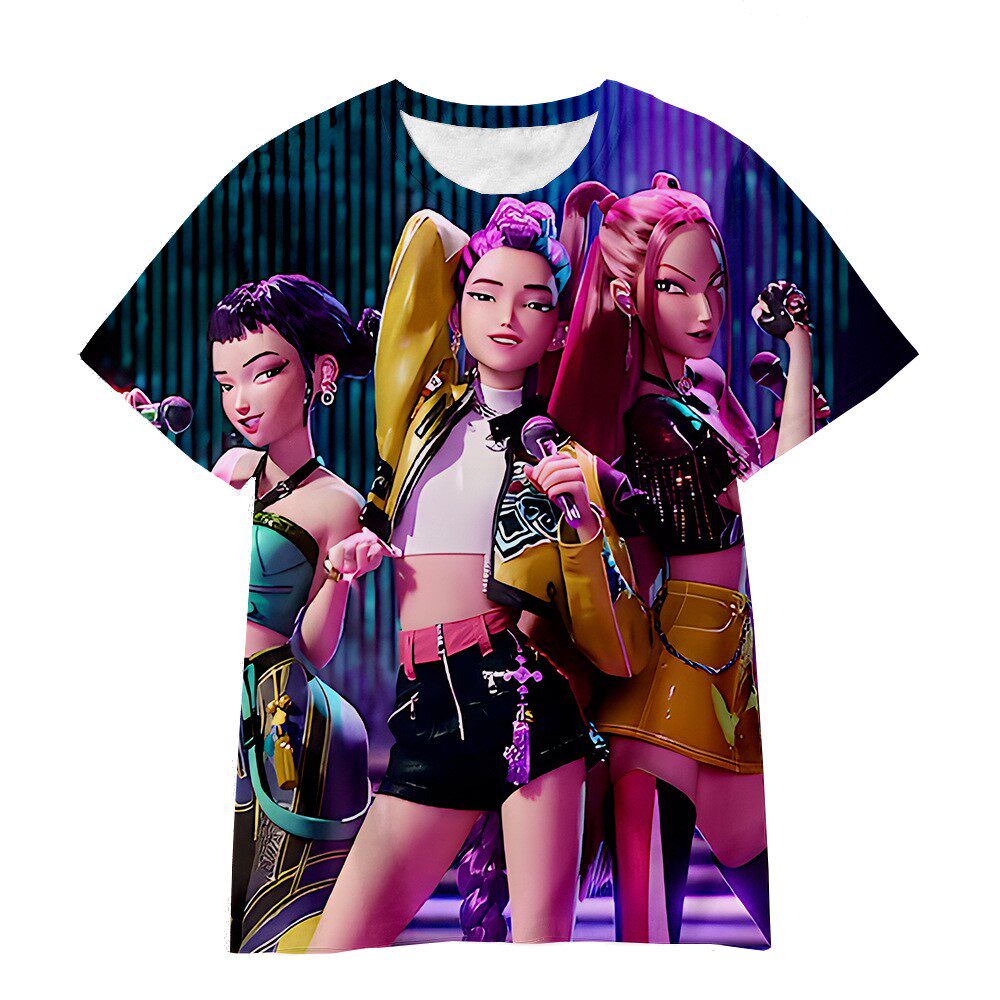 KPOP猎魔女团青少年女生短袖动漫3d儿童休闲个性时尚百搭T恤夏季