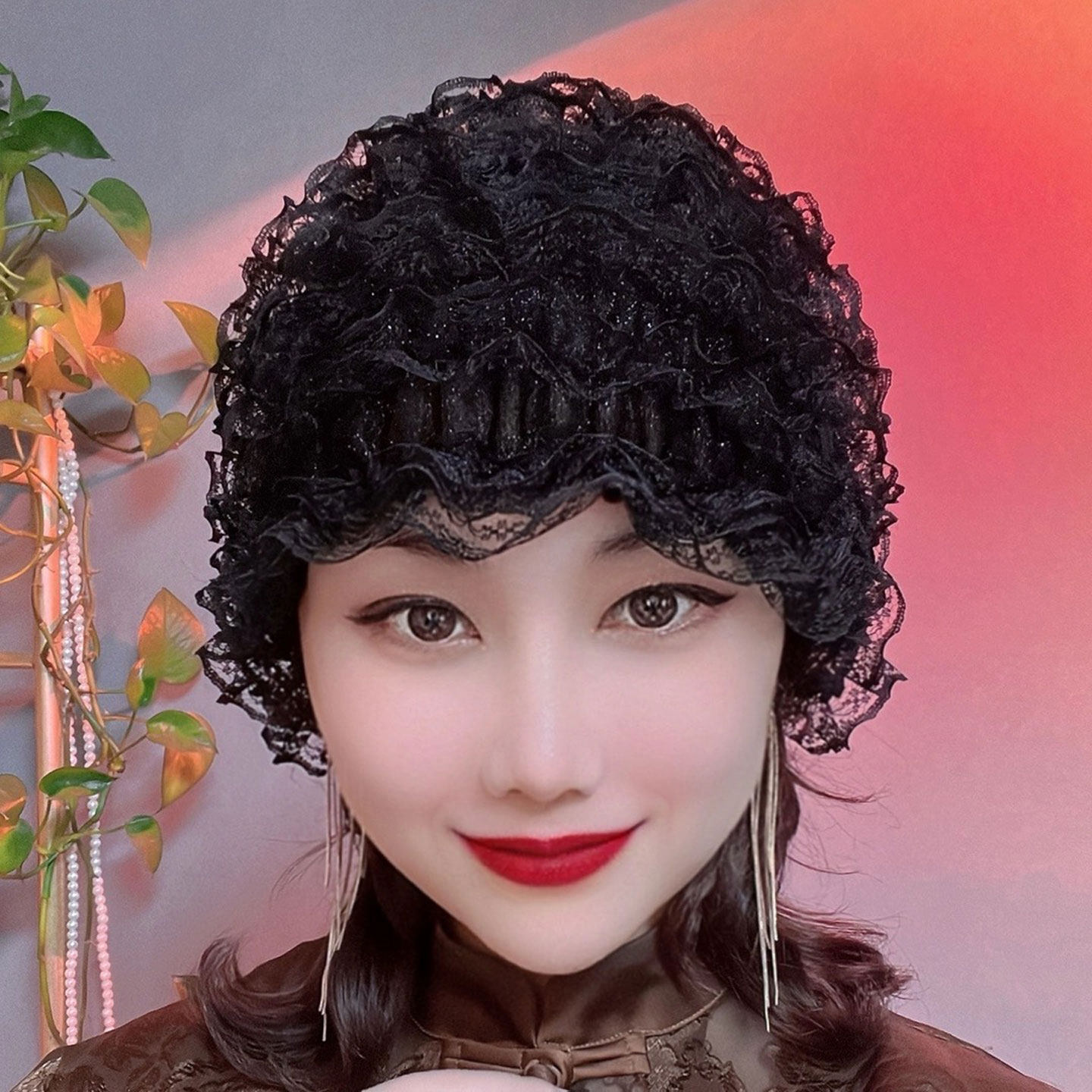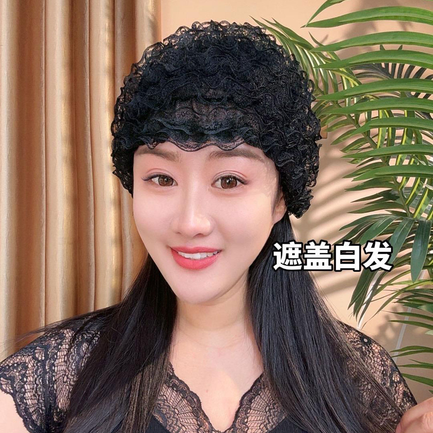 遮白发弹力包头帽子女款2026新款蕾丝网纱妈妈防尘帽时尚美人帽女
