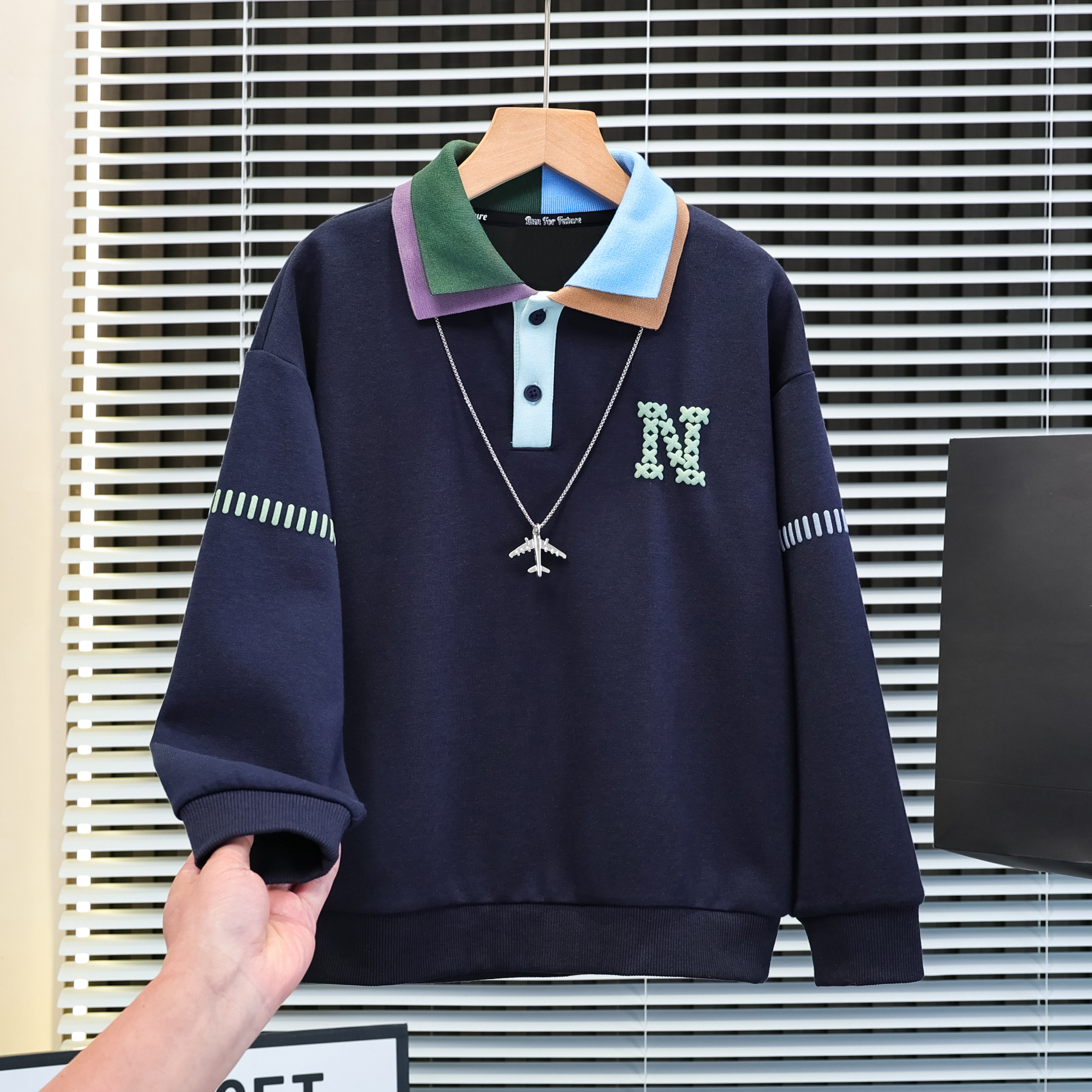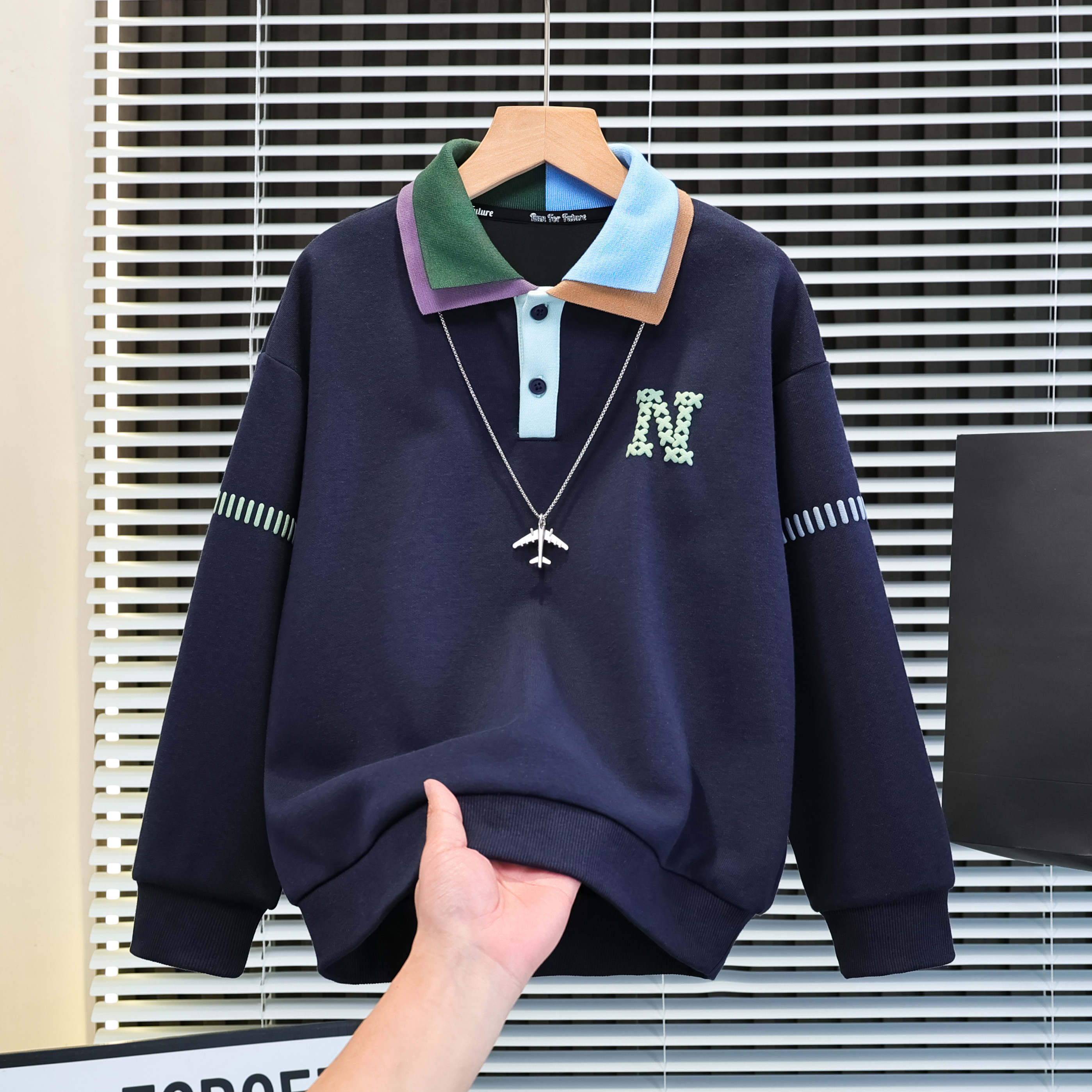 男童春秋款卫衣2026新款中大童春装儿童春季痞帅男孩polo衫上衣潮