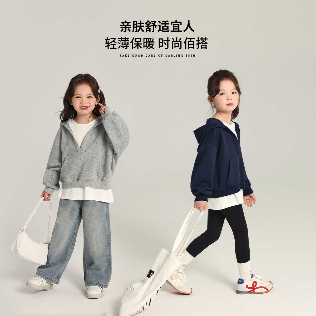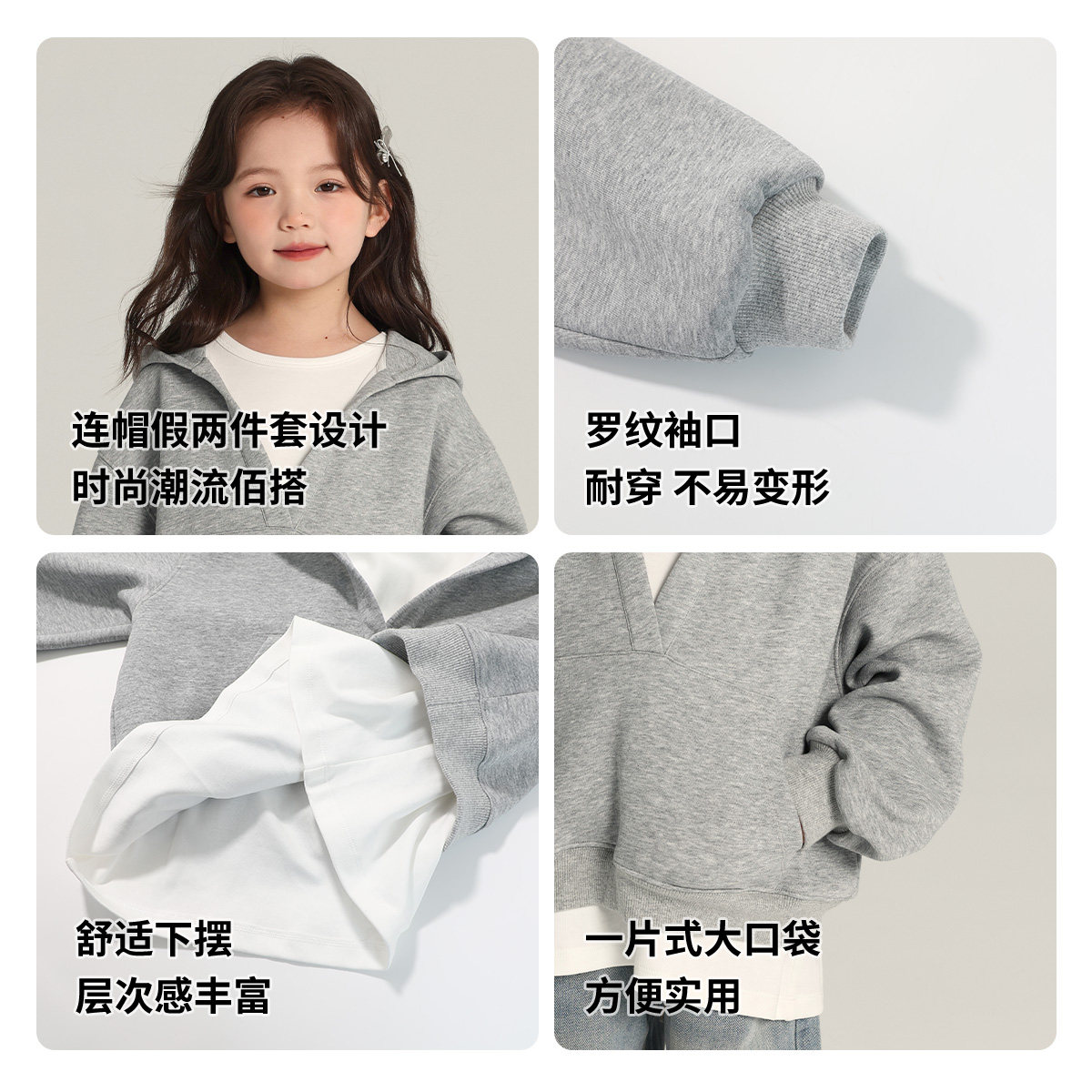 布丁哈鲁童装春装女童2026春秋新款儿童百搭洋气连帽假两件卫衣
