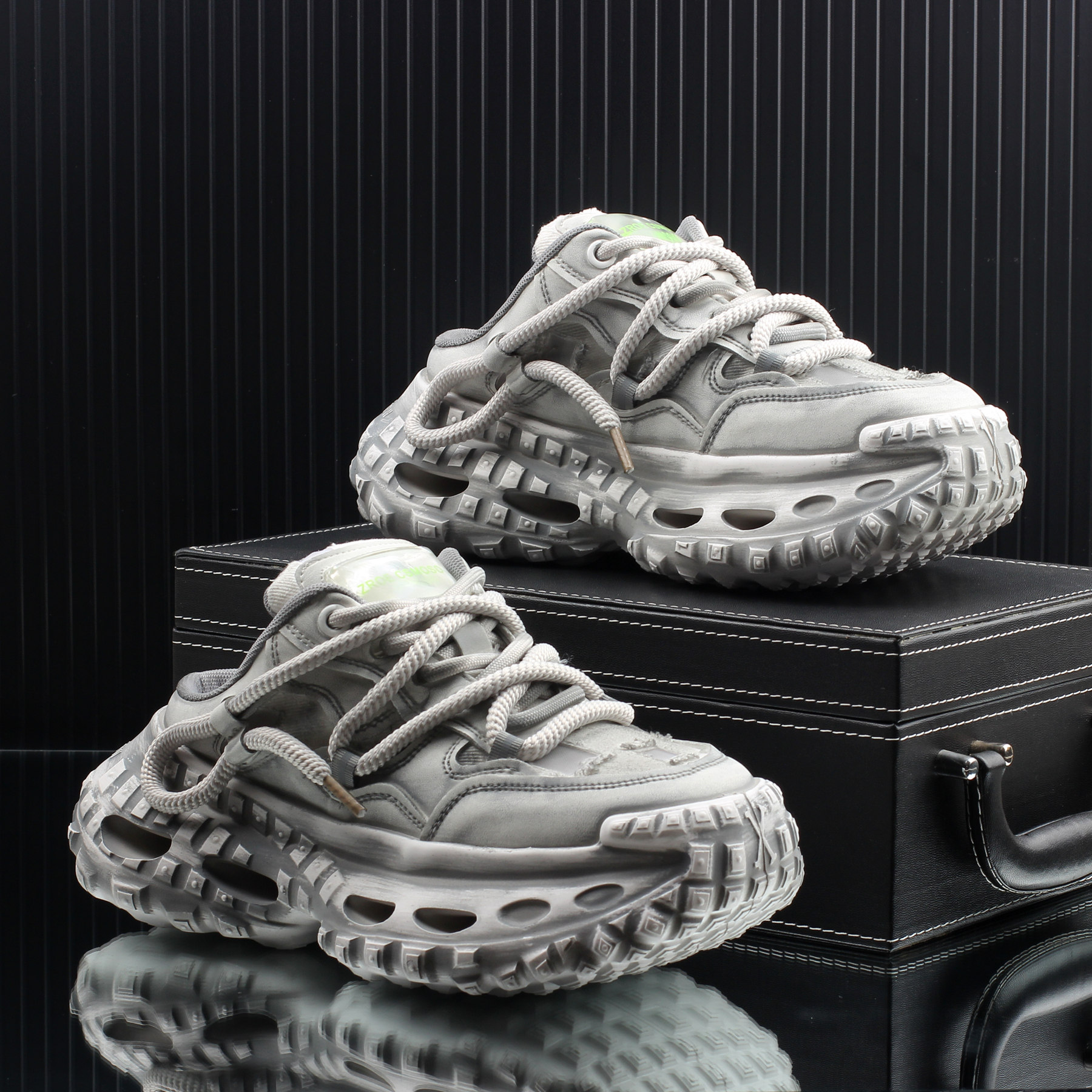 高级感潮牌男鞋2026新款春季无后跟半拖透气老爹鞋男款厚底增高鞋