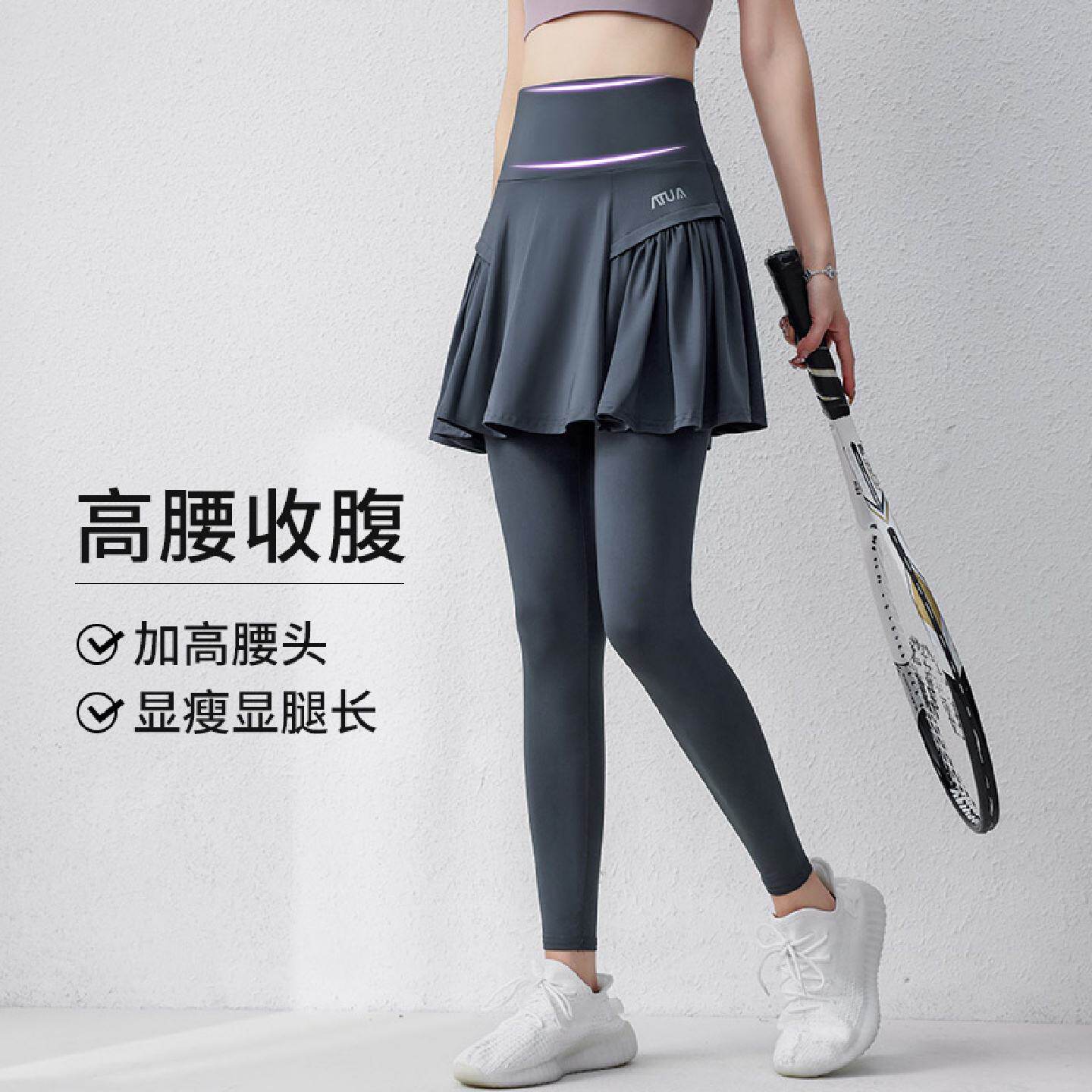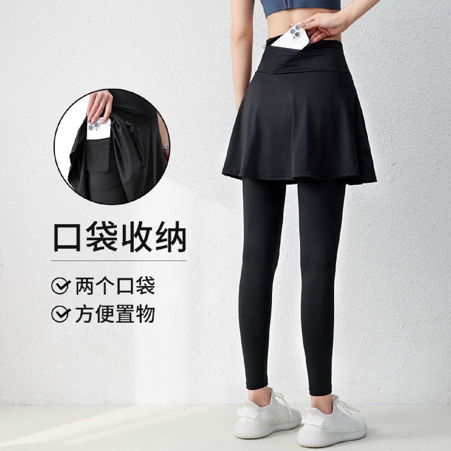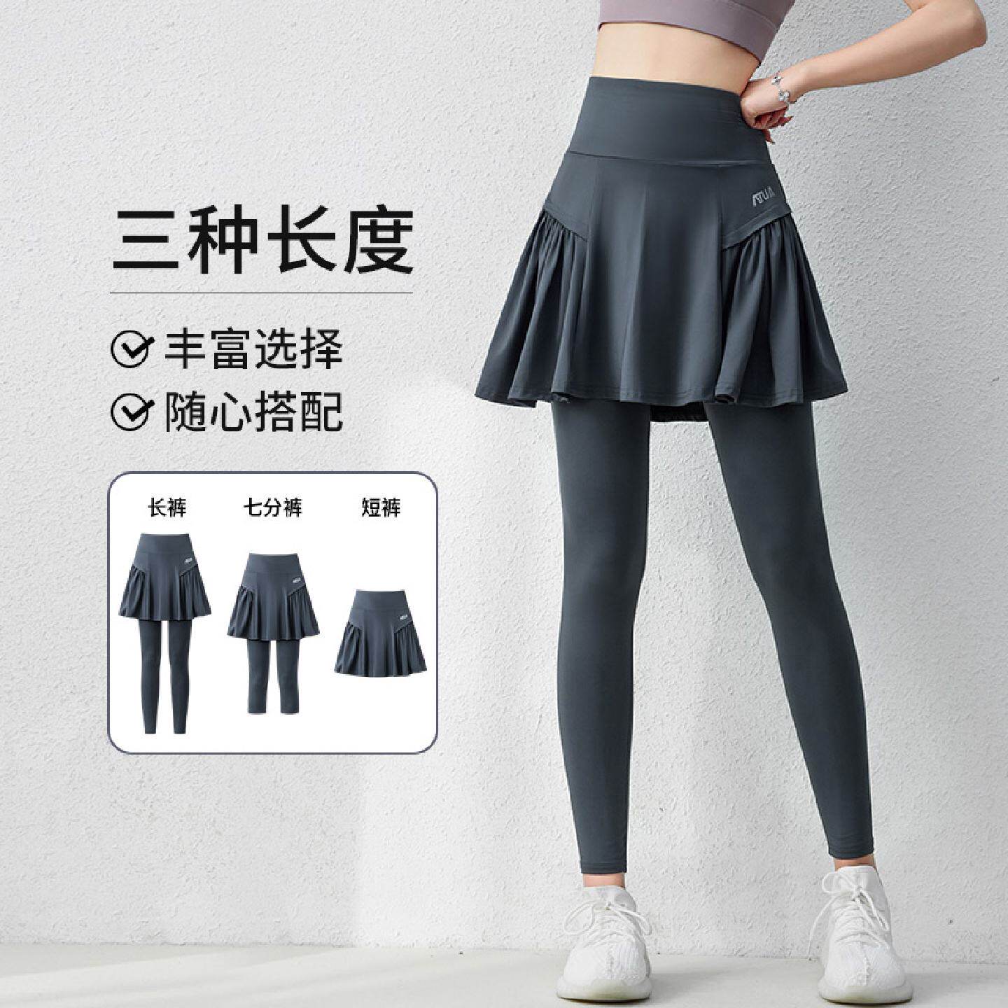 假两件瑜伽裤女大码高腰速干运动裤跑步健身裤胖mm外穿裙裤遮挡裙