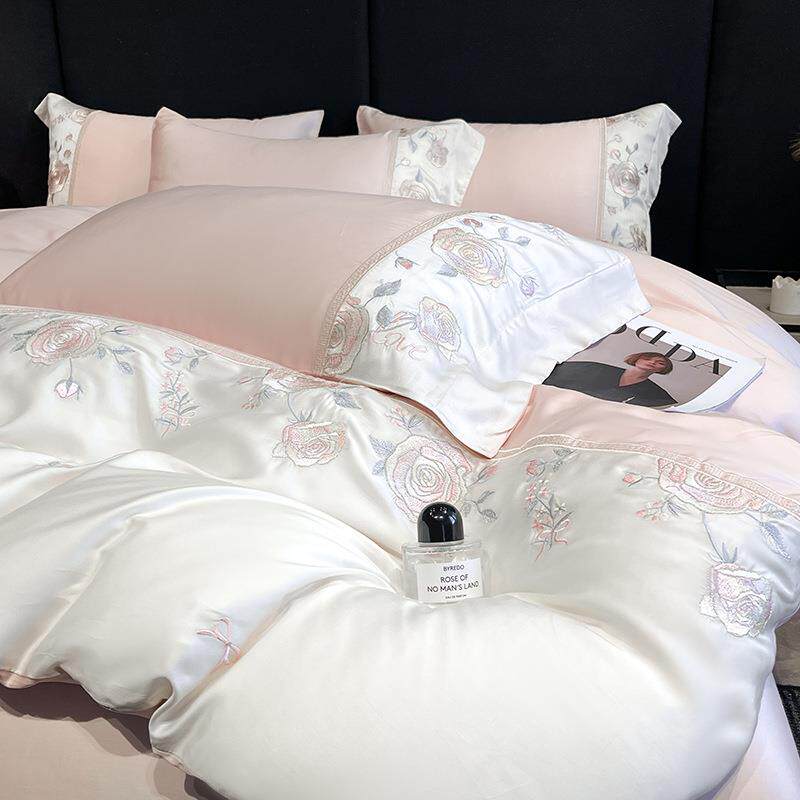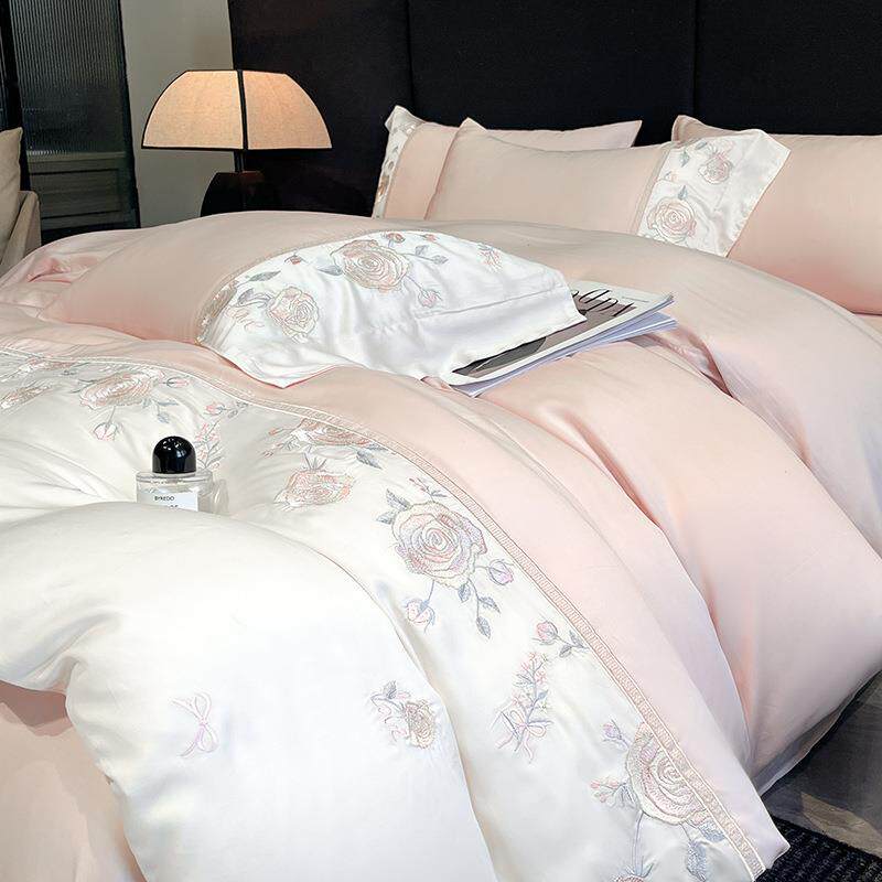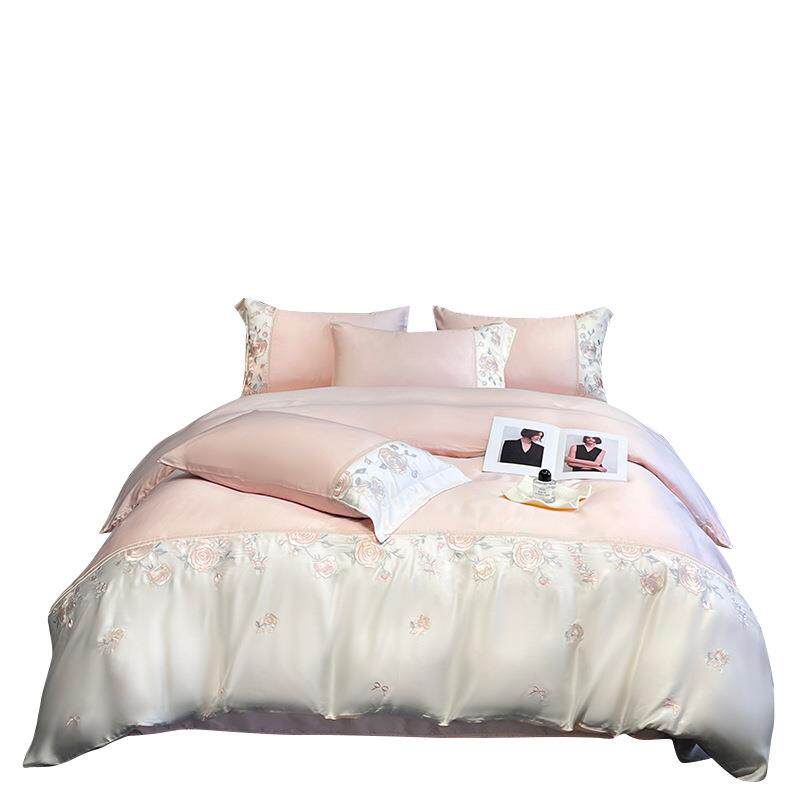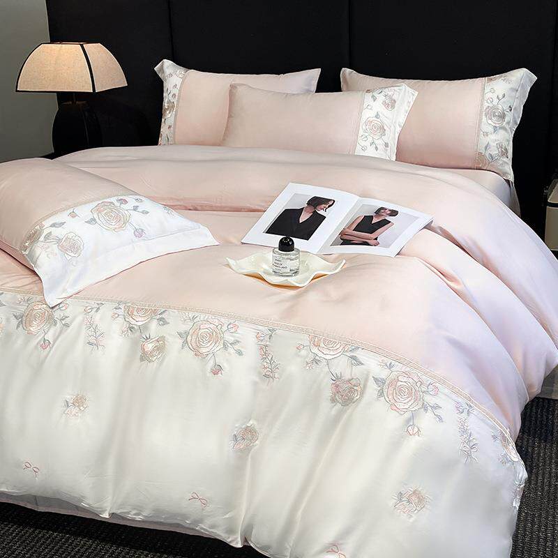 夏季粉色冰丝被套四件套床单床上用品床笠2025新款轻奢高档凉感丝