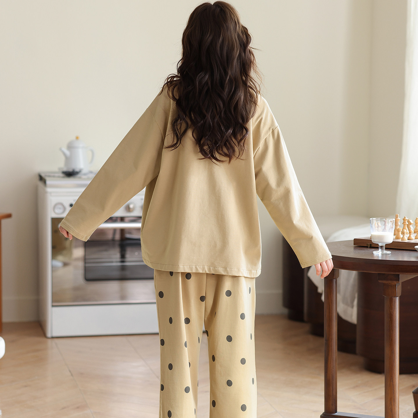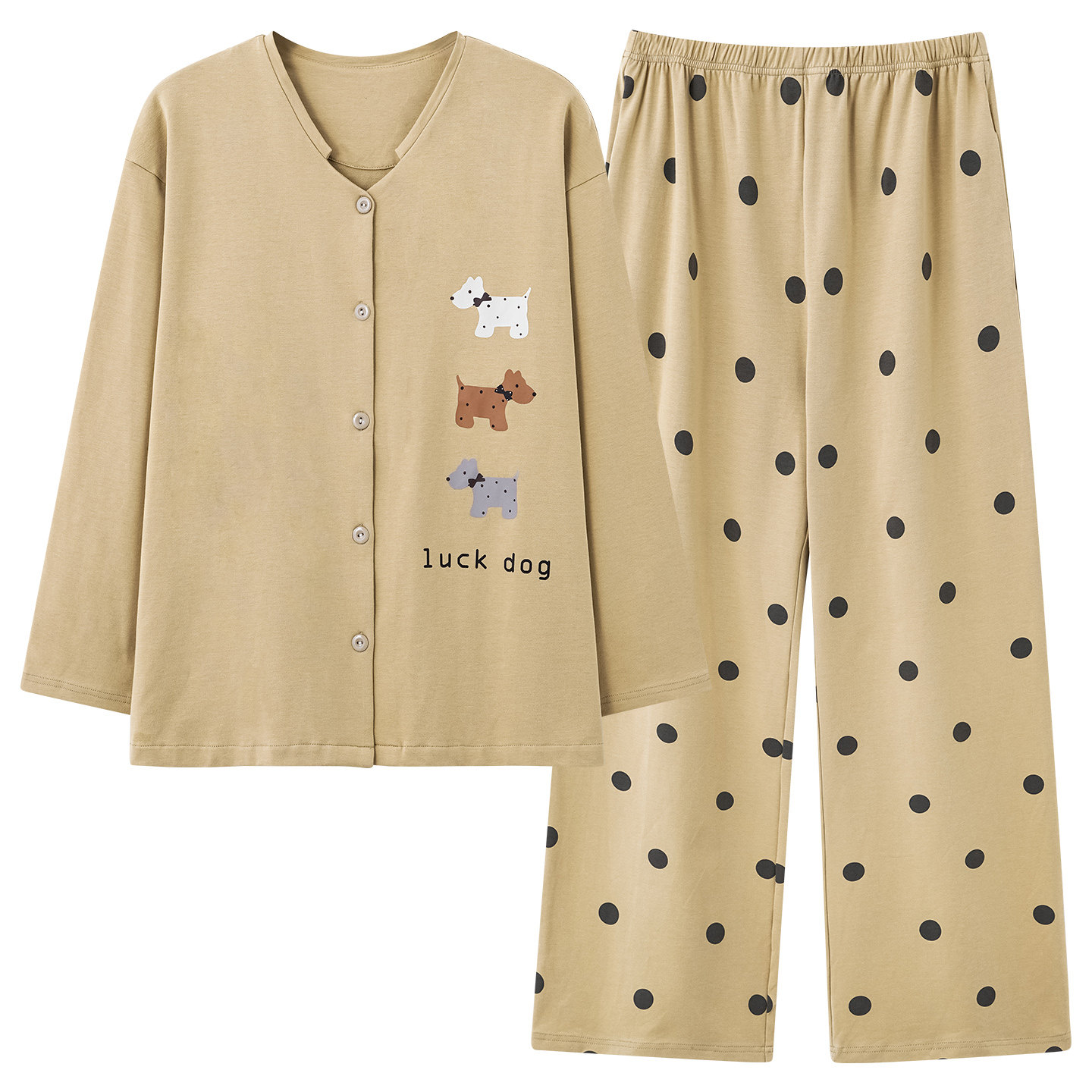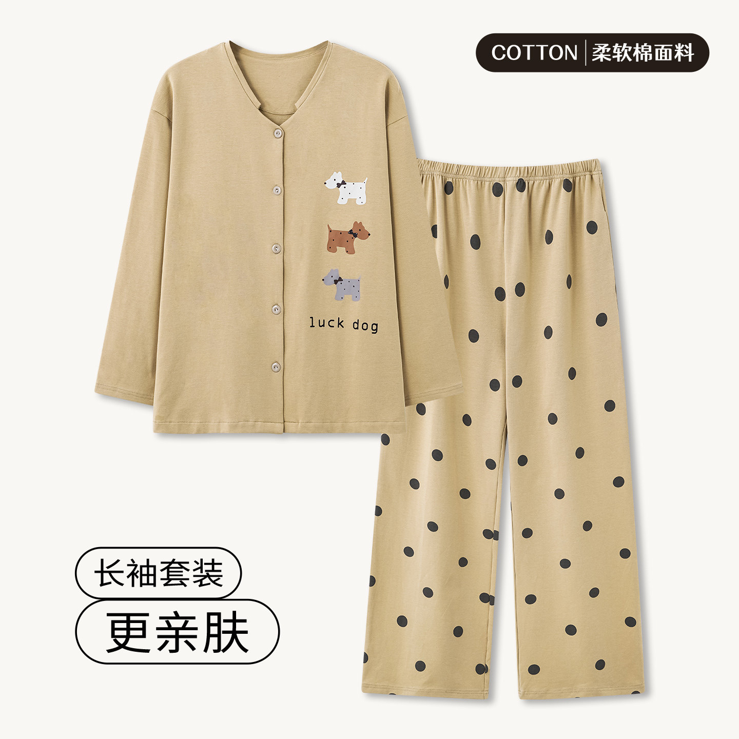 纯棉睡衣女款春秋季长袖长裤2026新款开衫圆点卡通小狗家居服套装