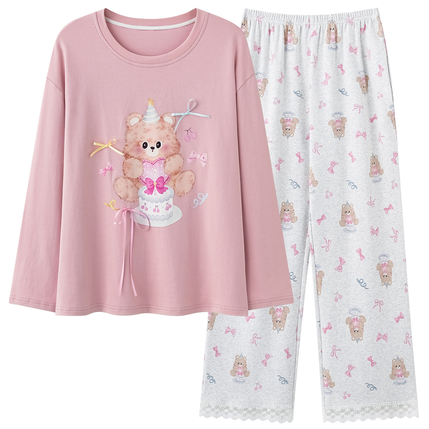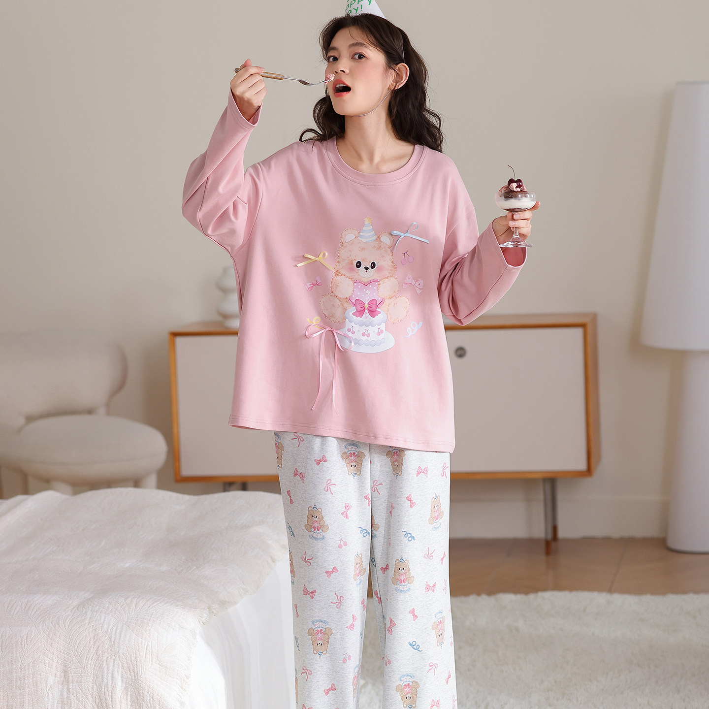 2026新款睡衣女款春秋季圆领长袖纯棉套装甜美可爱卡通少女家居服