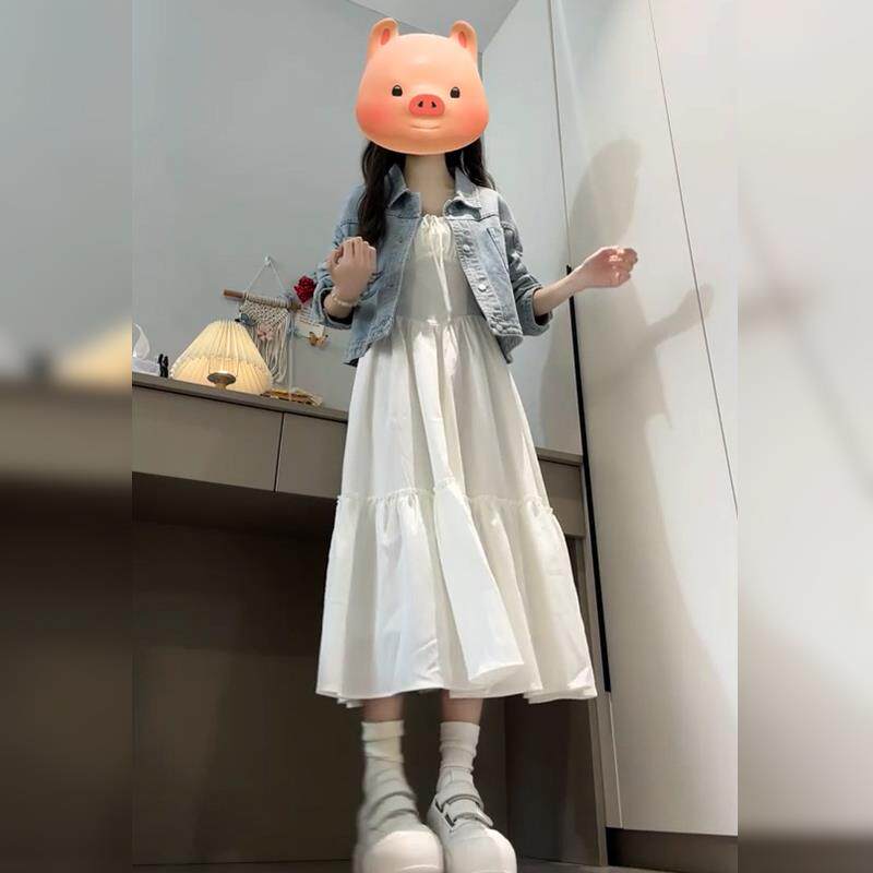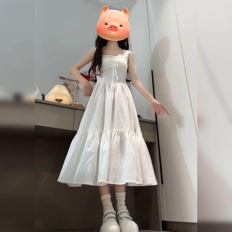 白色吊带连衣裙子女夏季2025新款小个子海边度假法式收腰气质长裙