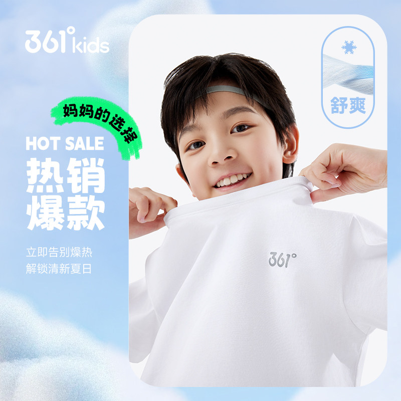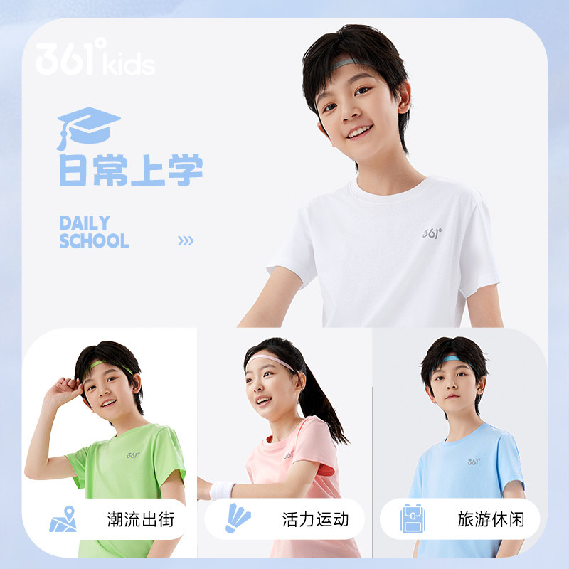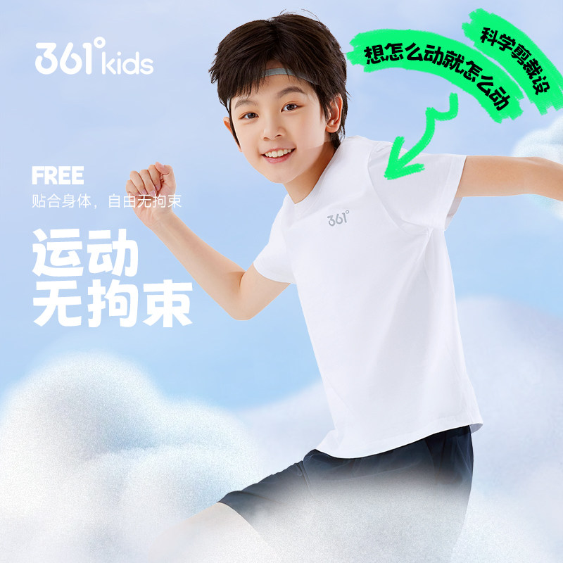 361儿童纯棉t恤2026夏季新款男女童圆领短袖青少年透气运动上衣