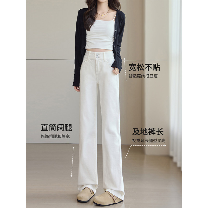 白色牛仔裤女2026新款秋季流行爆款小个子高腰阔腿显瘦窄版直筒裤