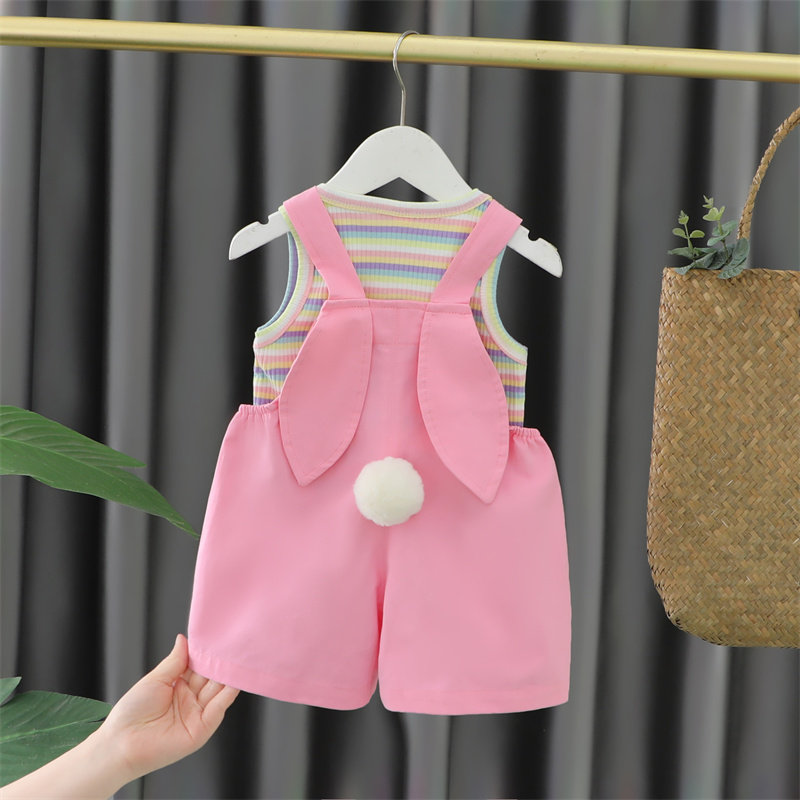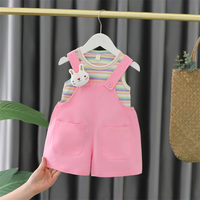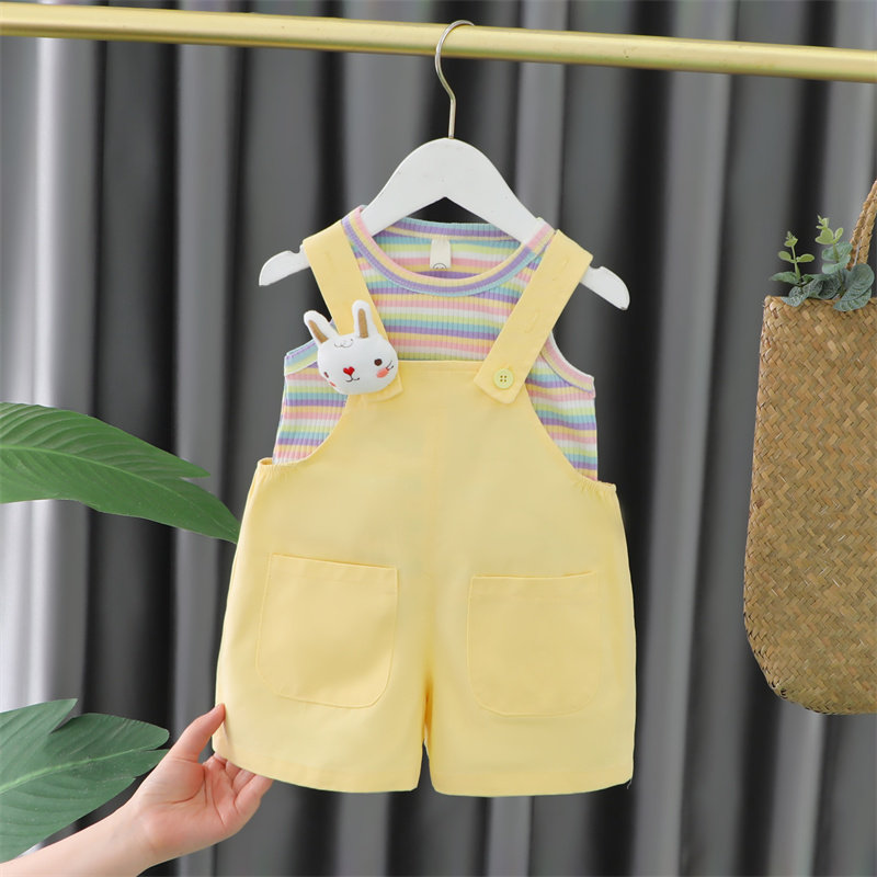 女童套装夏季2026新款洋气时髦小童装女宝宝背带裤两件套儿童夏装