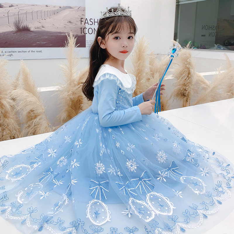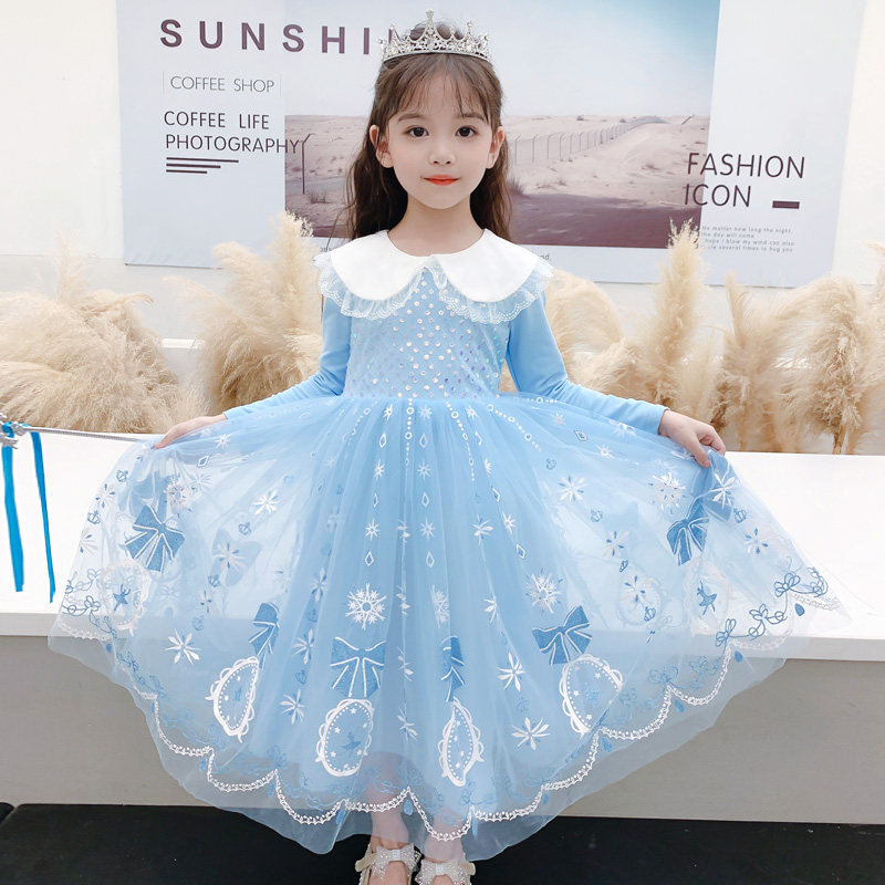 女童爱莎公主裙子春秋季2026新款儿童纯棉宝宝长袖艾莎连衣裙春装
