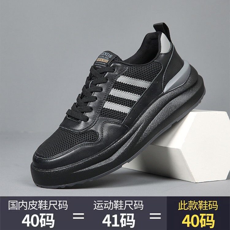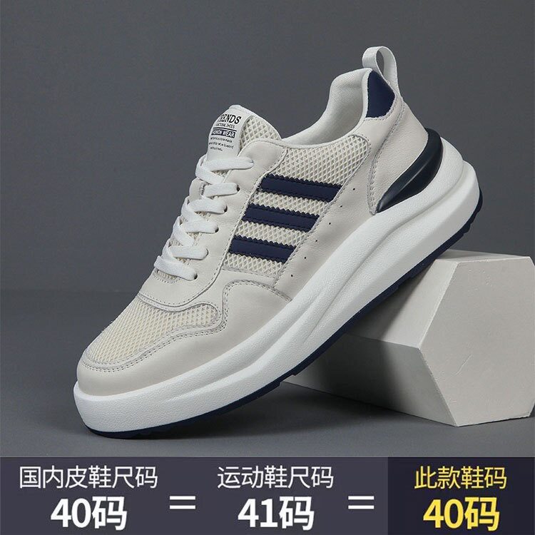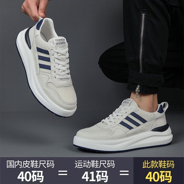 枫之时尚夏天厚底增高男鞋舒适透气简约百搭镂空不臭脚牛皮潮板鞋