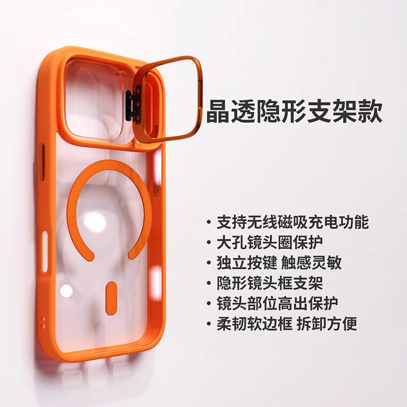镜头支架适用苹果17promax手机壳2025新款高级感透明磁吸外壳iphone16Pro带挂绳女款17Air全包15防摔14保护套