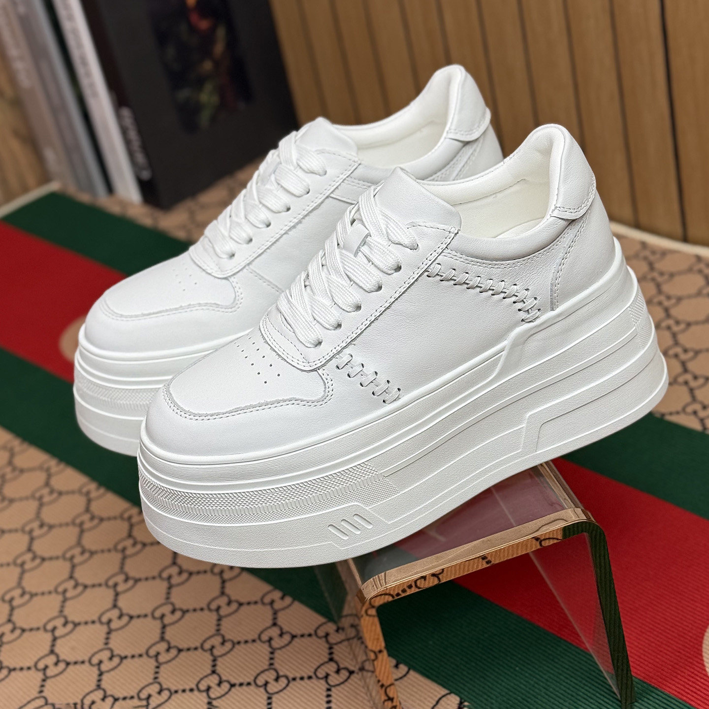 真皮内增高8-10cm松糕厚底小白鞋韩版休闲小个子女鞋2026新款春款