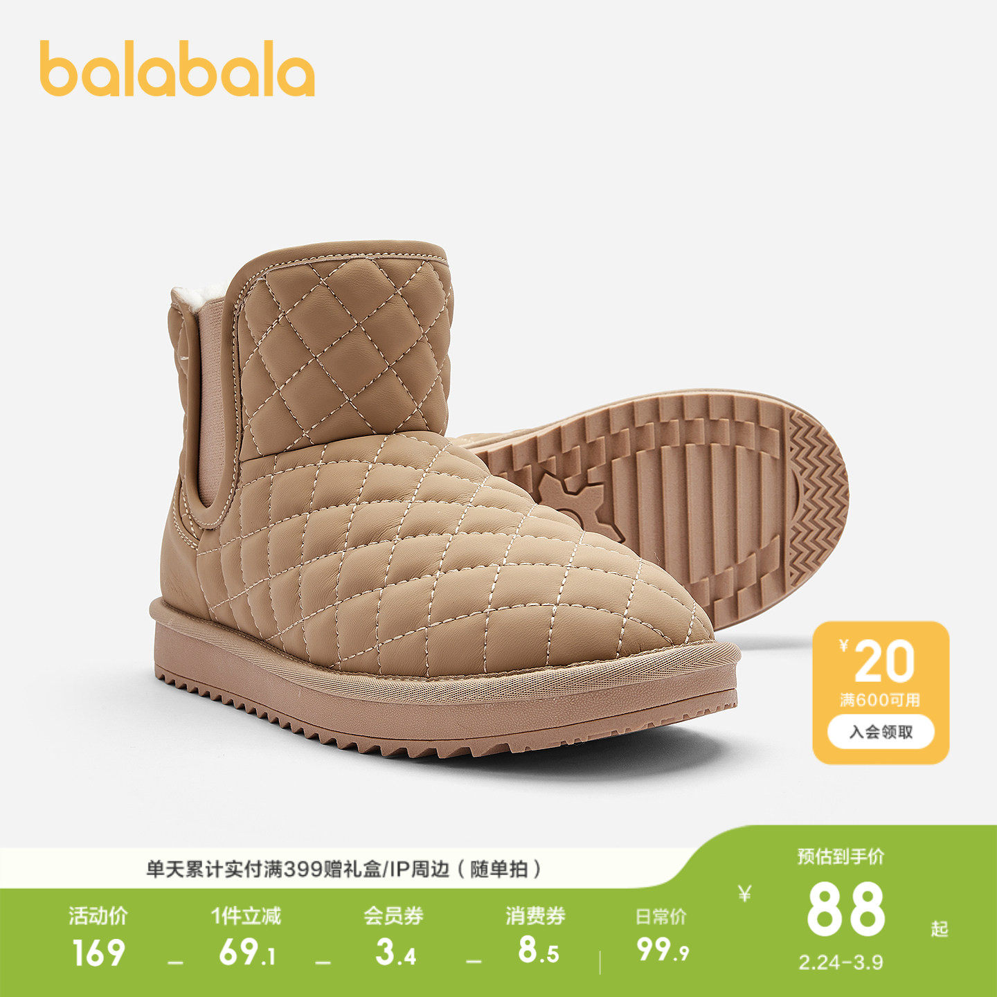巴拉巴拉童鞋儿童雪地靴男童加厚加绒棉靴冬季靴子防滑棉鞋一脚蹬