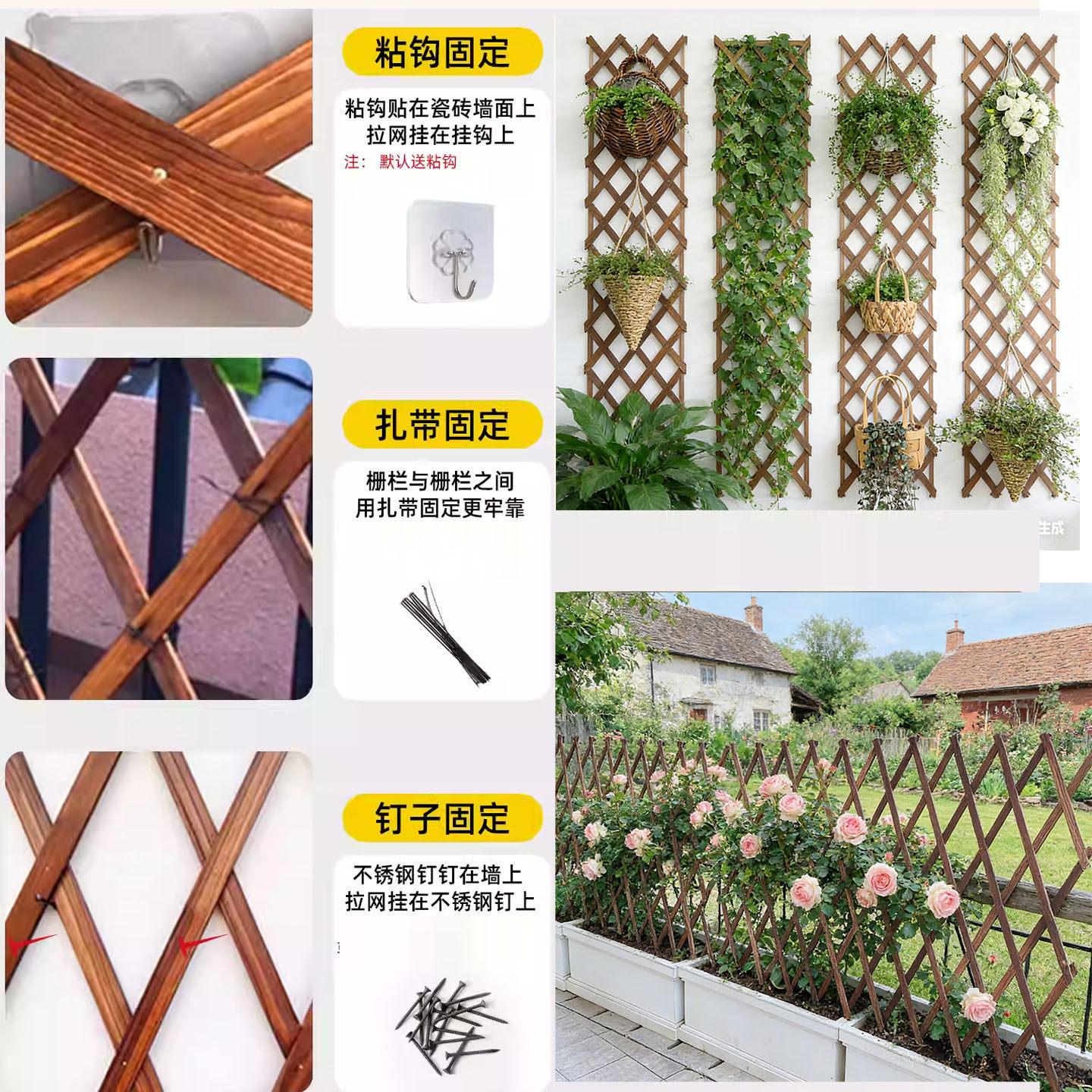 植物爬藤架攀爬网格花架碳化防腐伸缩木拉网片木栅栏木篱笆围栏