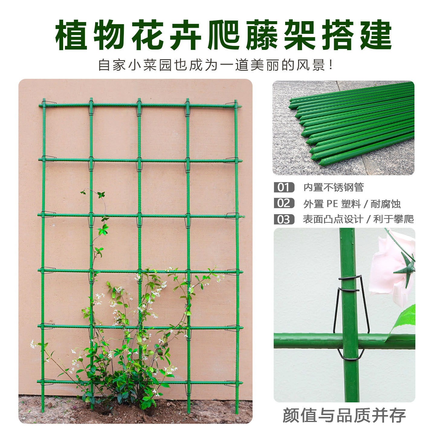 网格花墙爬藤架月季蔷薇固定支撑杆花卉植物铁线莲银丝茉莉攀爬架