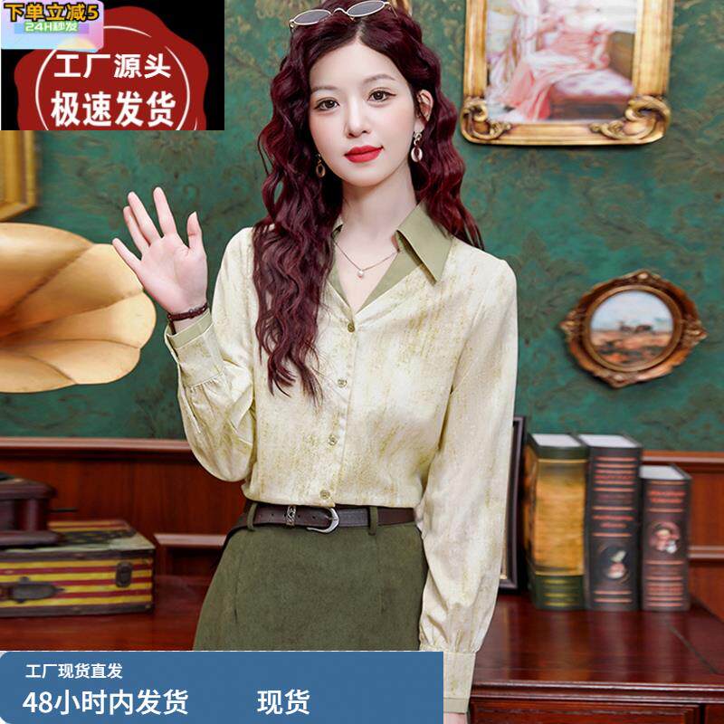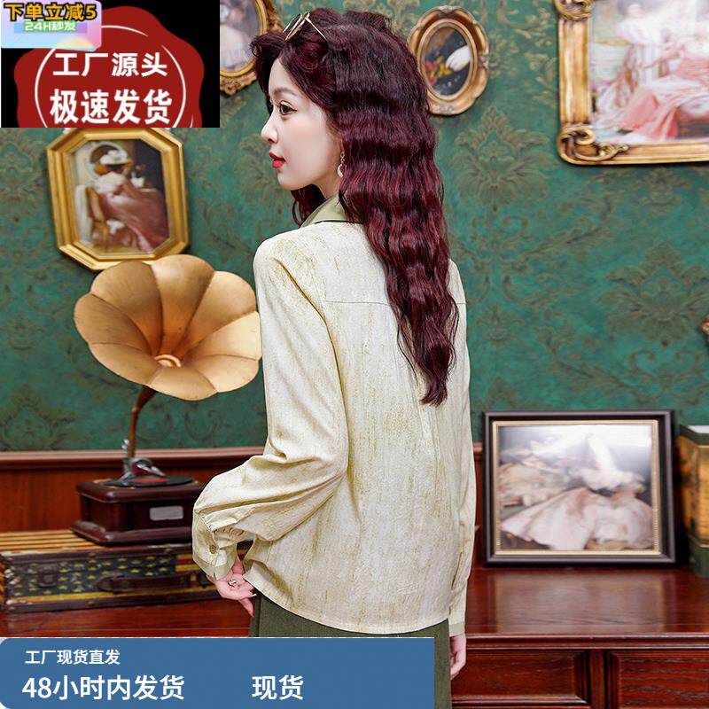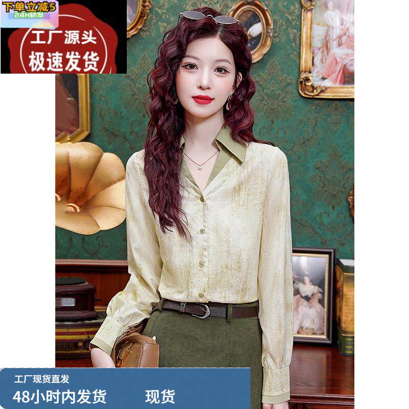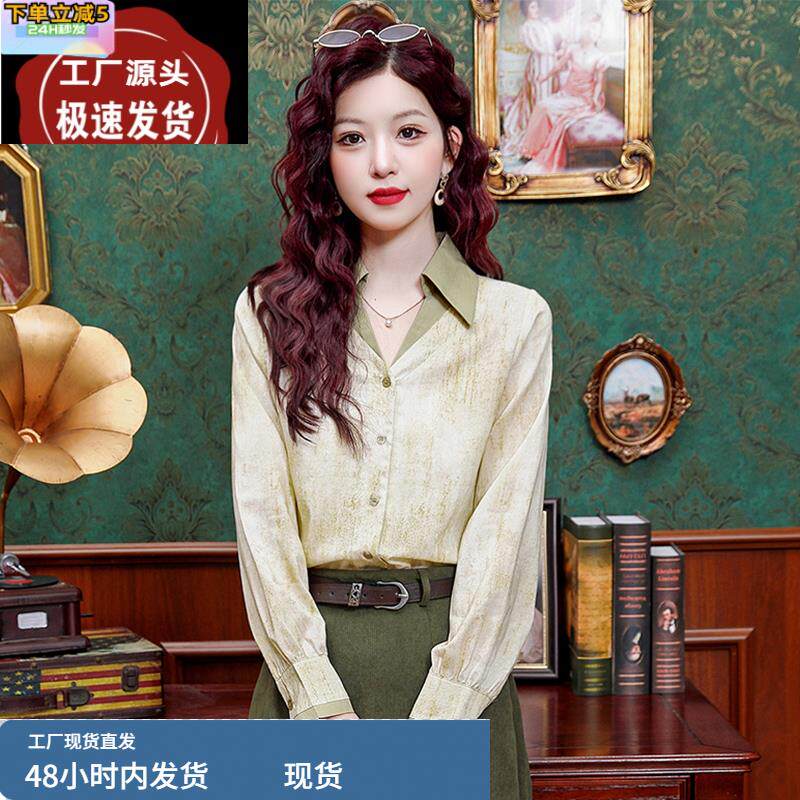 复古假两件长袖衬衫女款春装2025新款高级感轻奢百搭气质上衣洋气