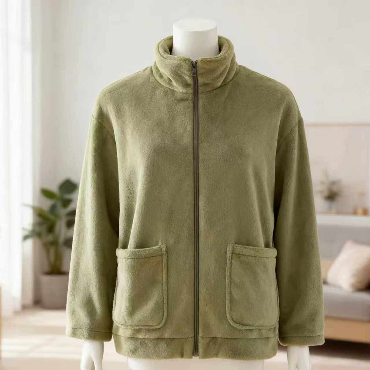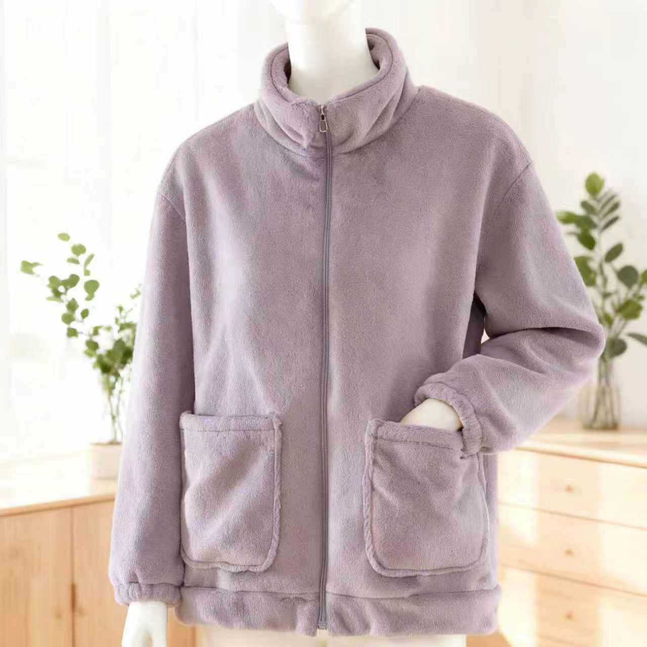 拉链单件上衣睡衣女款冬季珊瑚绒加厚秋冬法兰绒可外穿冬款家居服