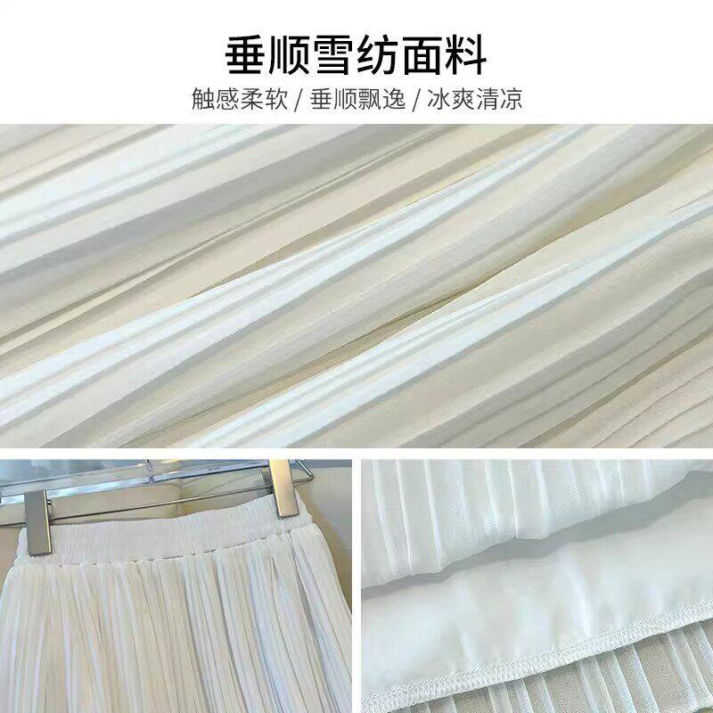 巨好看白色半身裙女春夏季2026新款雪纺百褶裙小个子中长a字伞裙