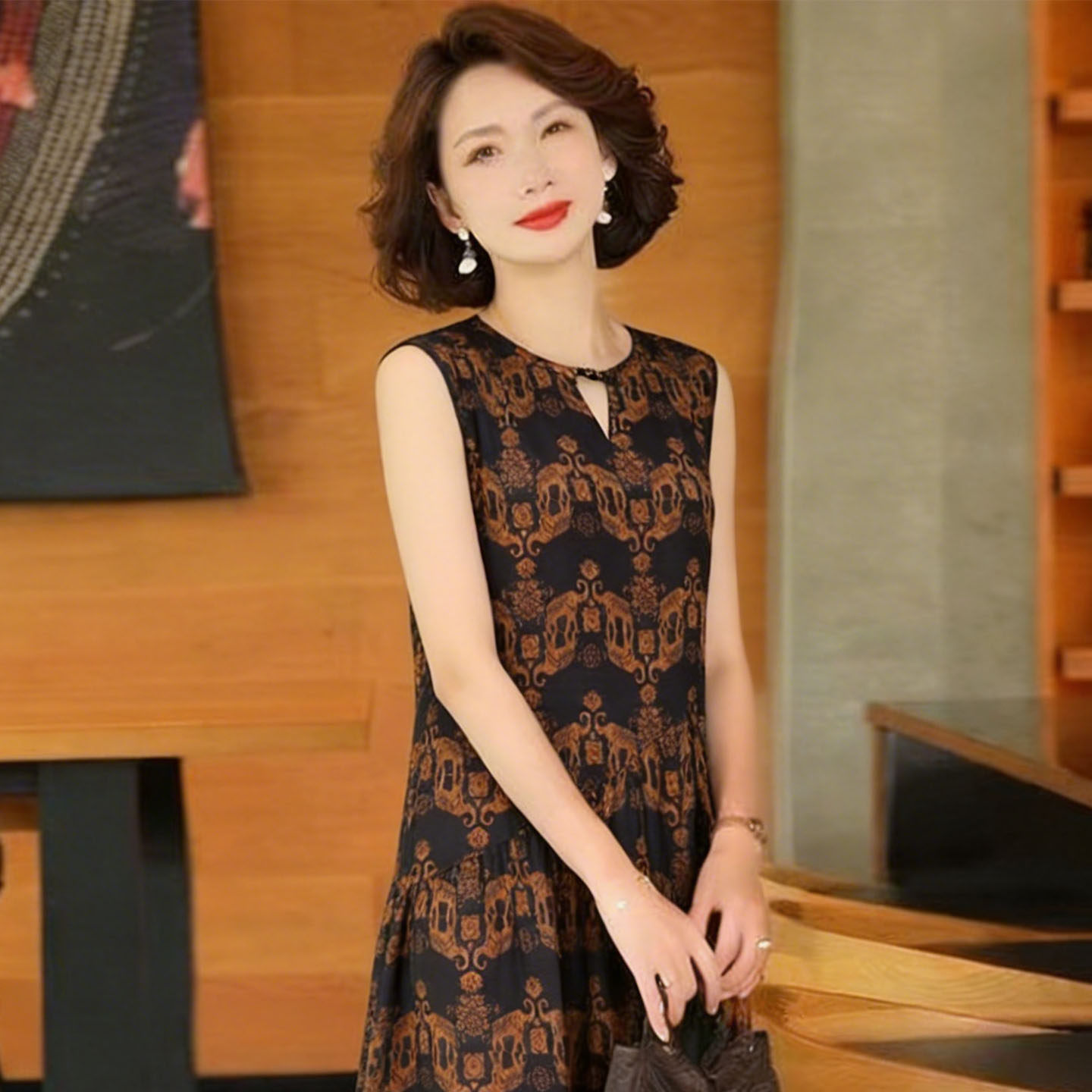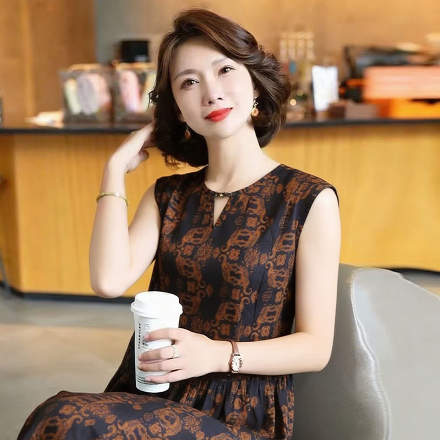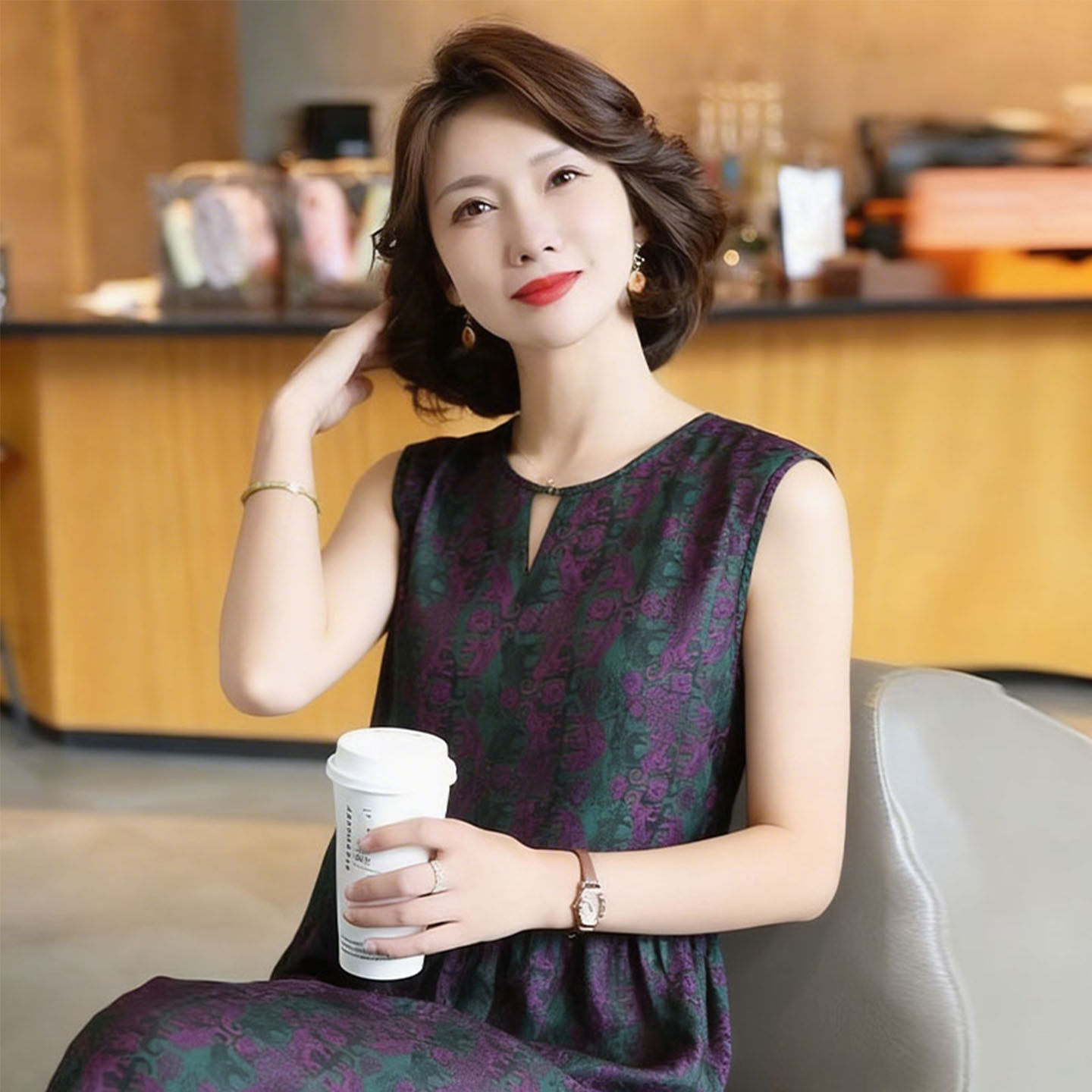 杭州真丝春夏新款提花无袖连衣裙女桑蚕丝轻奢高级感妈妈气质长裙