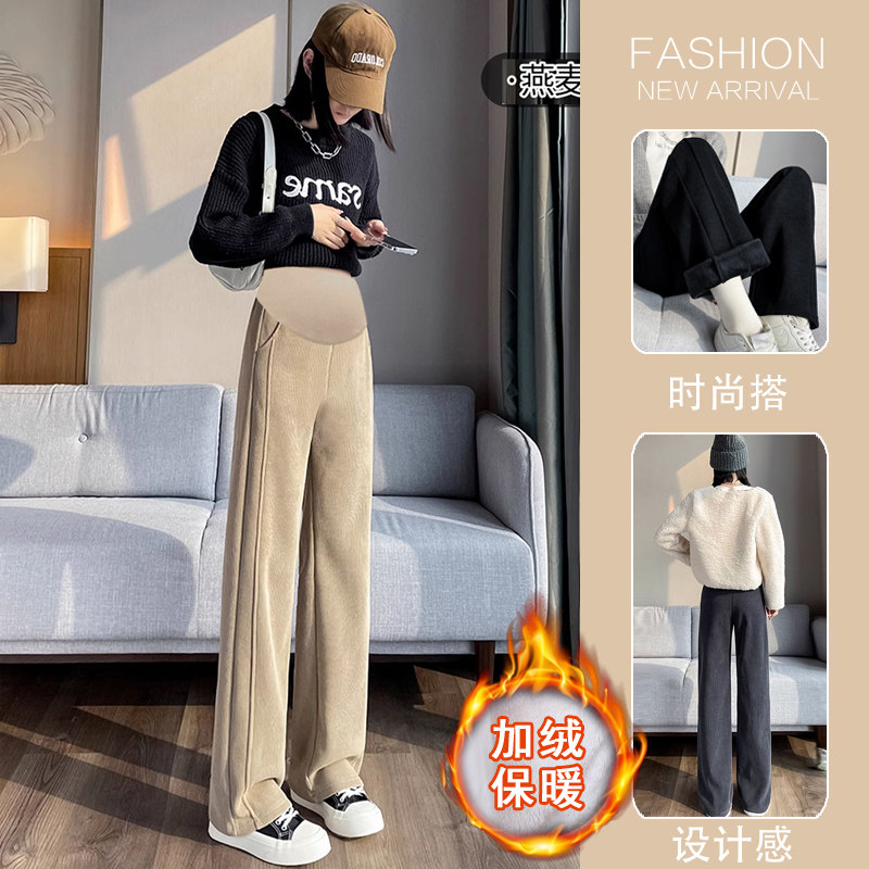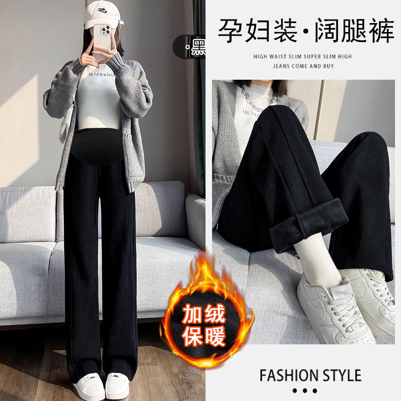 孕妇裤冬季加绒加厚2024新款小个子春秋女阔腿裤冬天外穿裤子秋冬