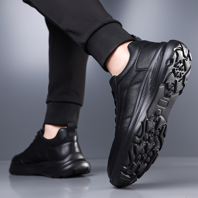 莆鞋田男鞋运动鞋休闲风男士黑色厚底透气百搭软底系带春季跑步鞋