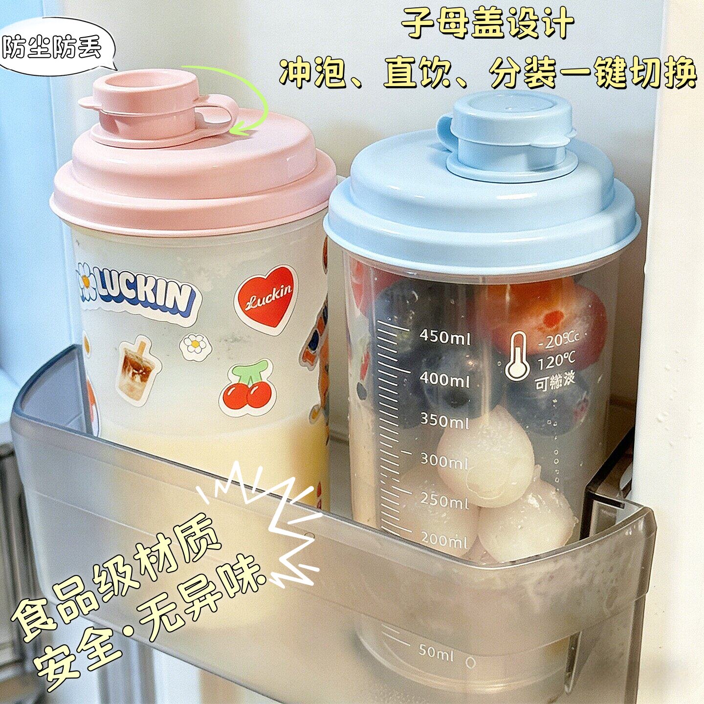 外带便携式食品级冷萃杯大容量可冷藏咖啡杯密封不漏带刻度饮料杯