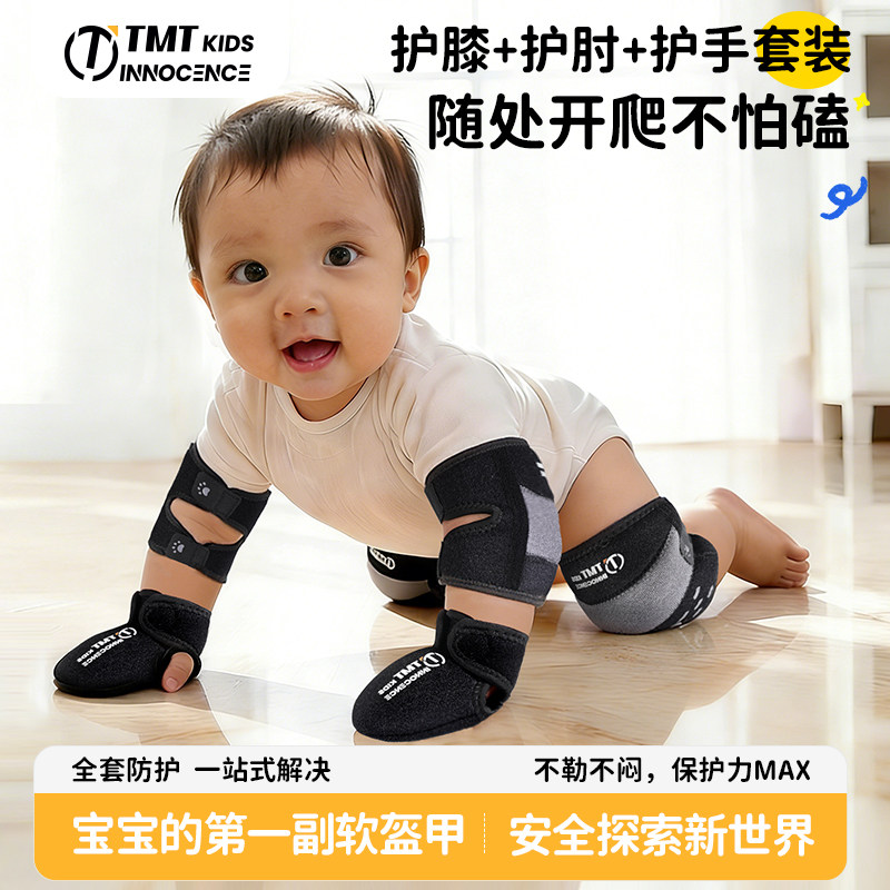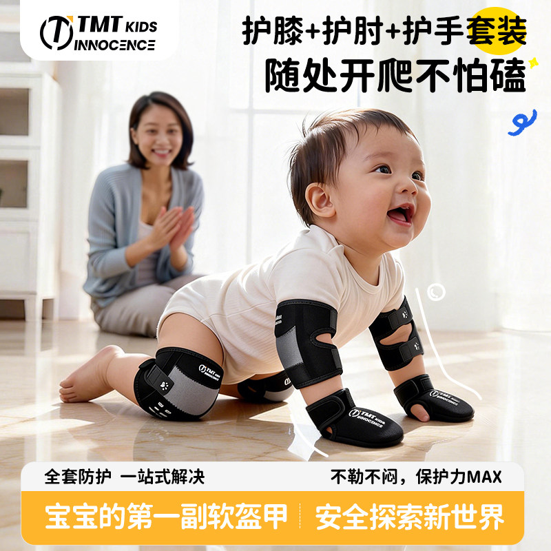 TMT婴儿爬行护膝学步防摔防滑护腿宝宝护肘护手可调节透气套装备