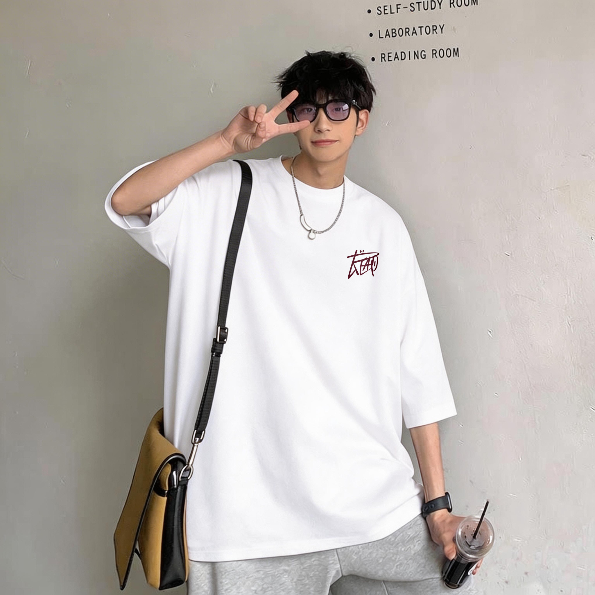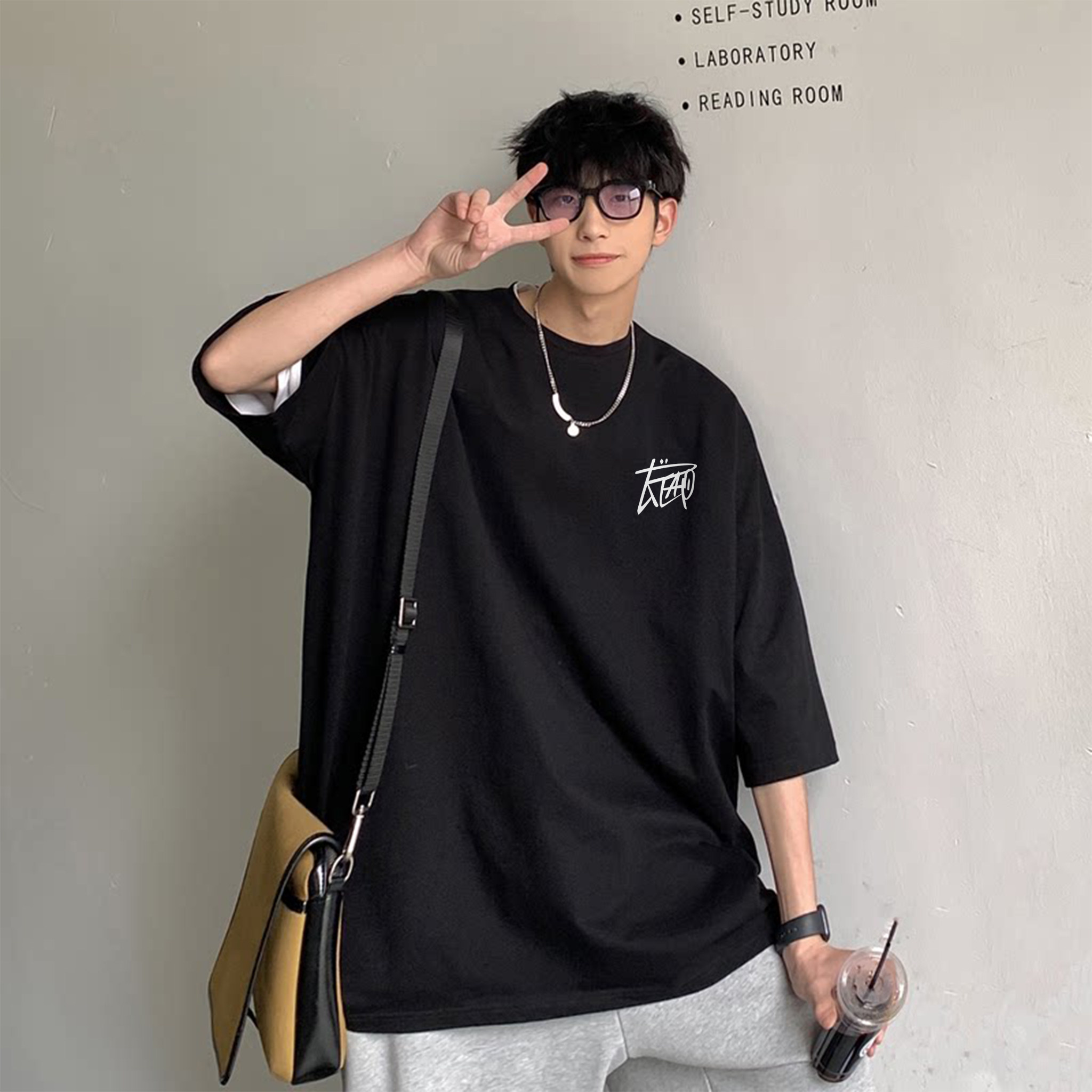 胖胖哥日系短袖t恤男夏季青少年大码宽松五分袖宽松纯棉半袖体恤
