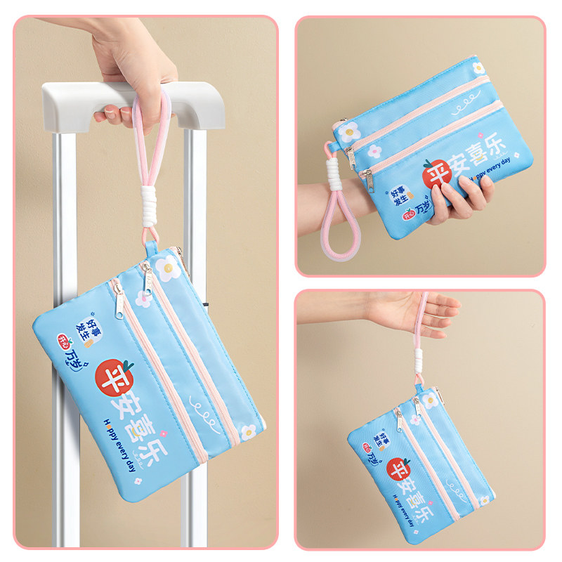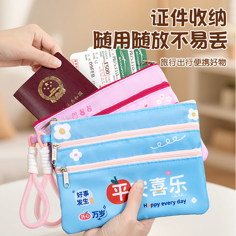 手提旅行收纳包轻便可爱卡通护照包多功能证件卡包分层设计便携机票护照整理包学生党出行旅游必备防丢收纳袋