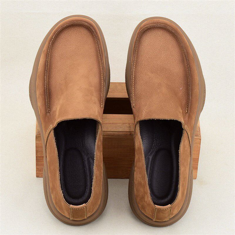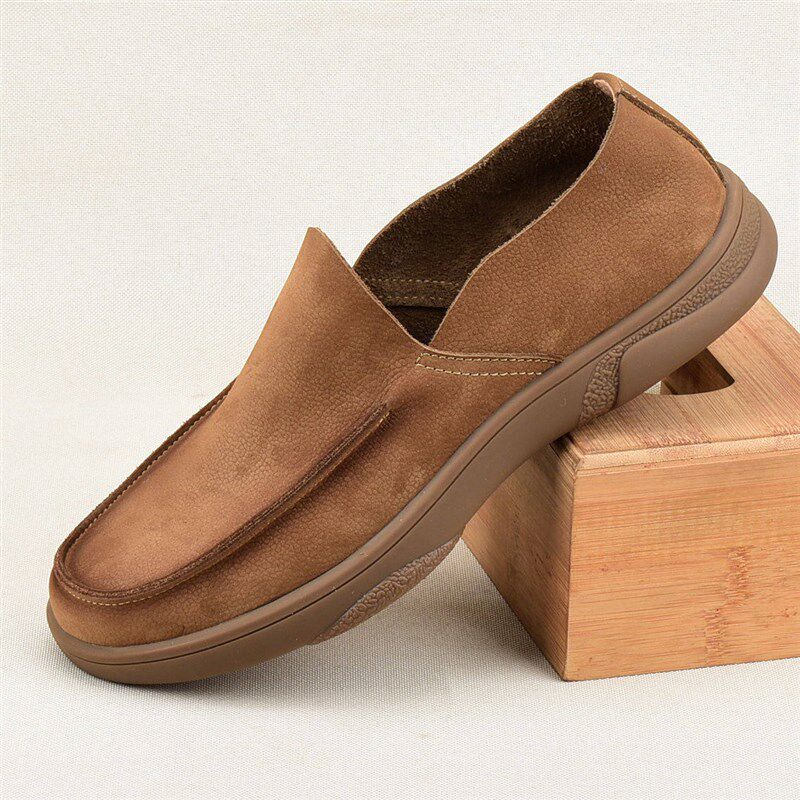 新款复古单层牛皮透气皮鞋男款百搭英伦软底休闲真皮宽脚大头男鞋