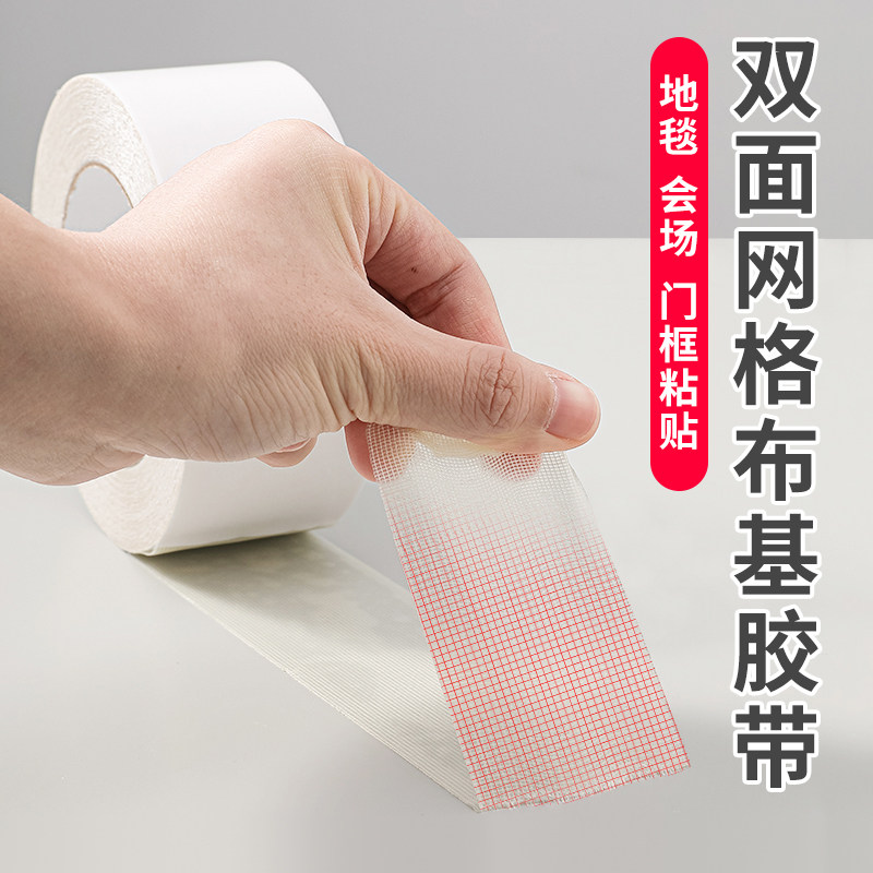 强力网格布基双面胶不留痕高粘度半透明胶带粘地毯地垫防滑固定贴