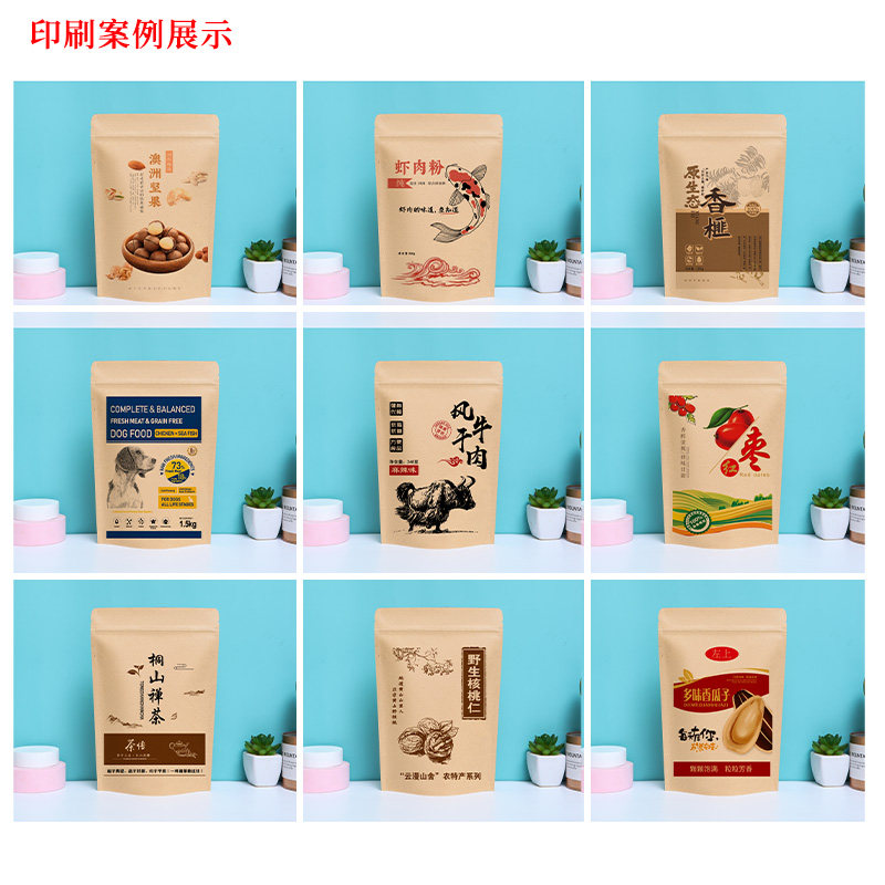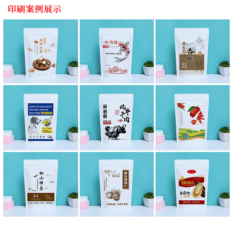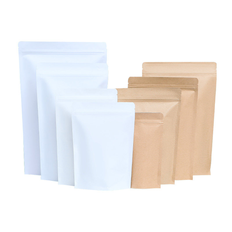 牛皮纸内镀铝袋自立自封袋茶叶包装袋黄色白色封口袋可印logo定制