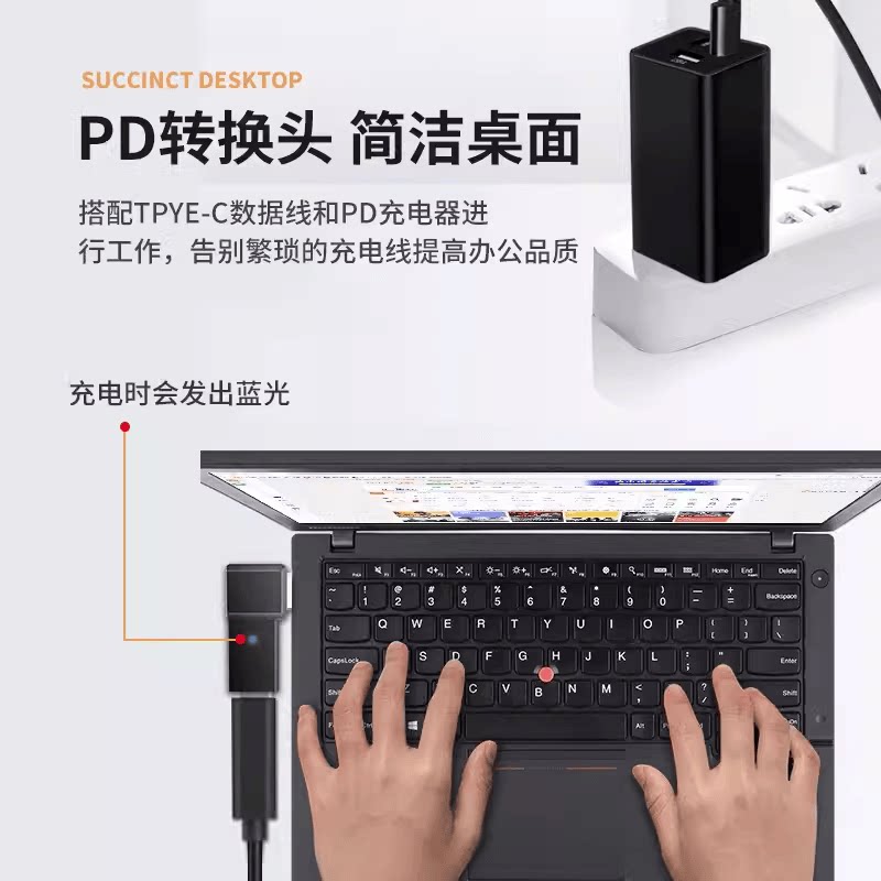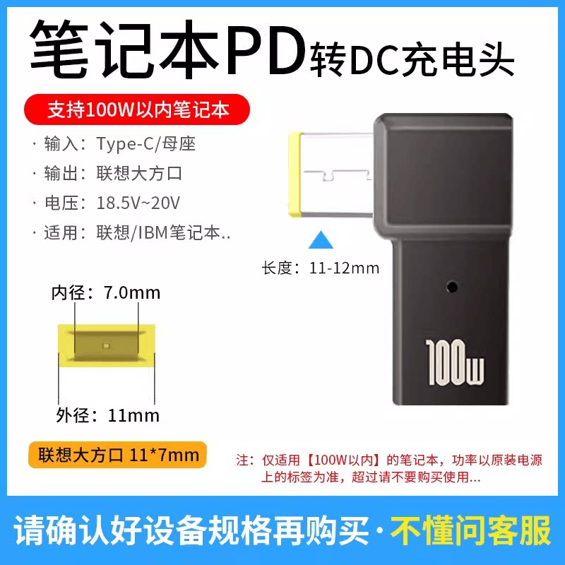 适用于65W 100W 135W联想笔记本电源适配器转接头TypeC母座转方口