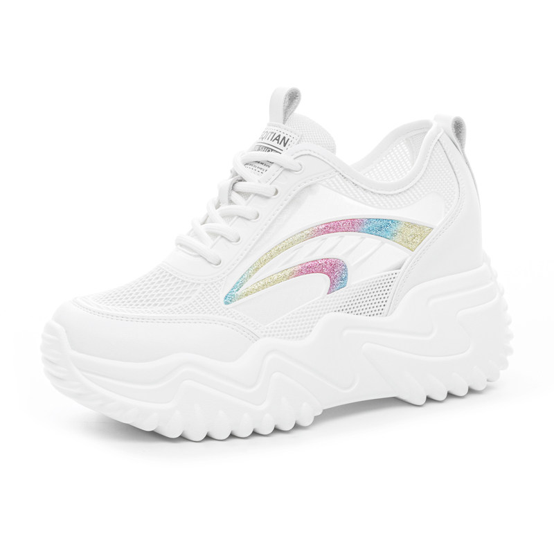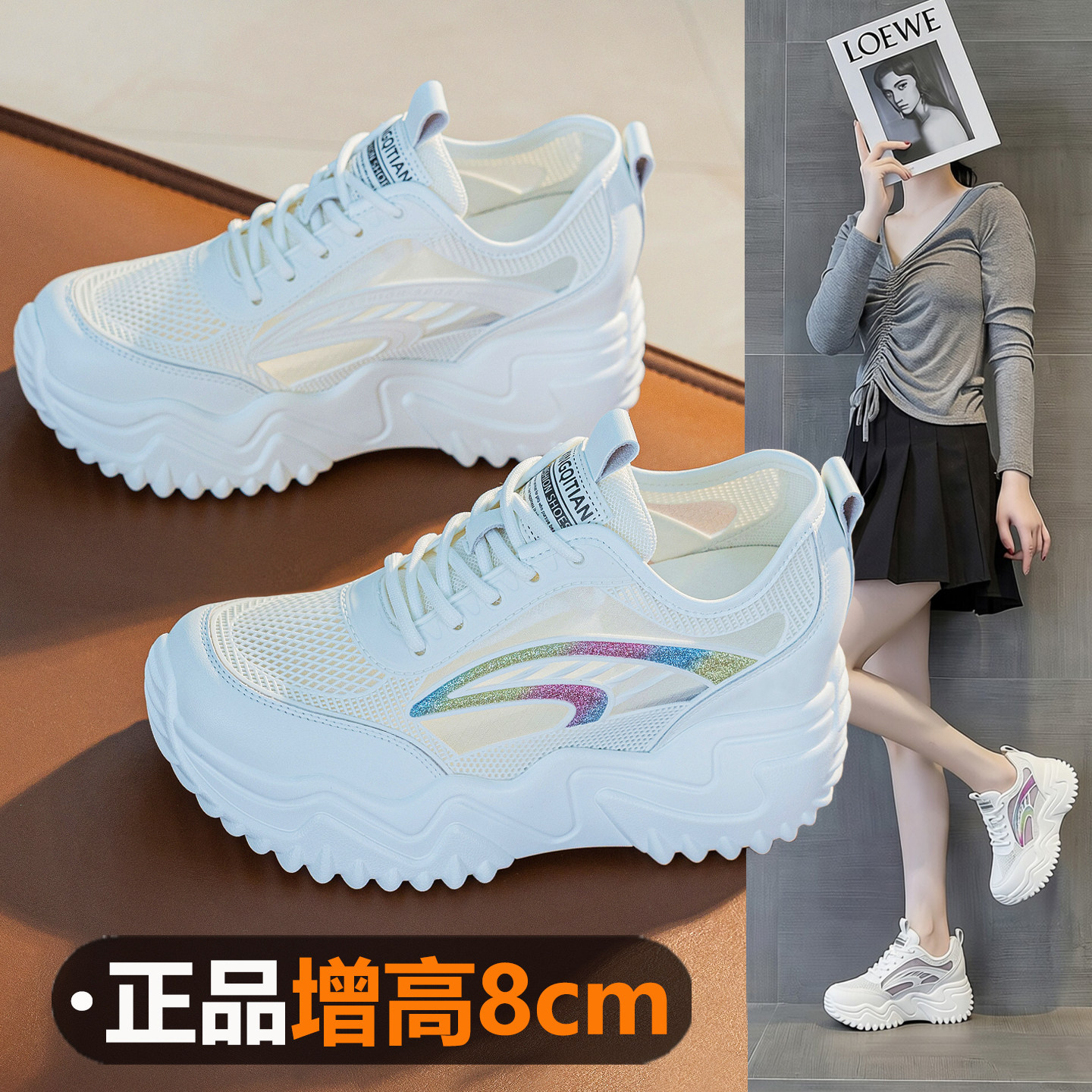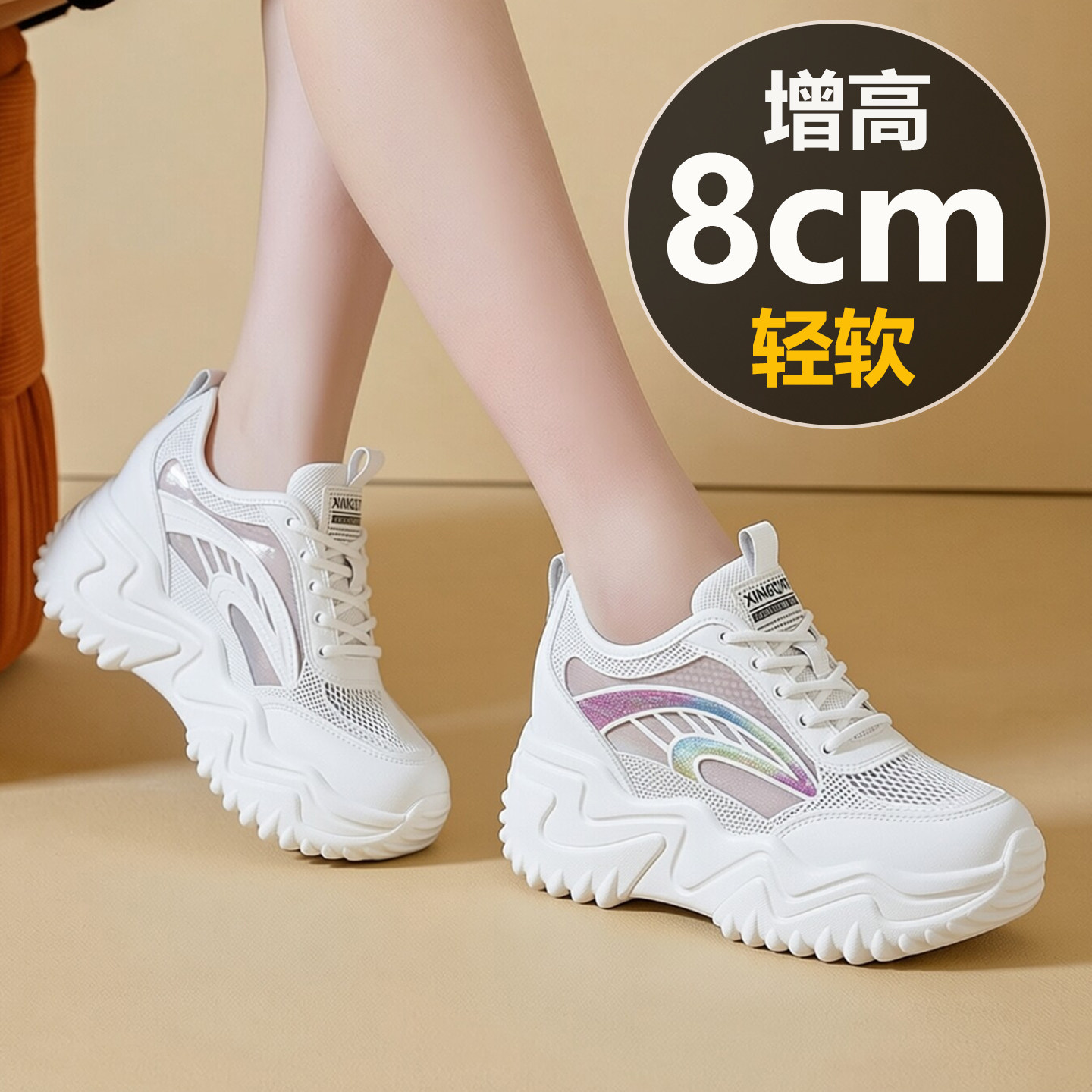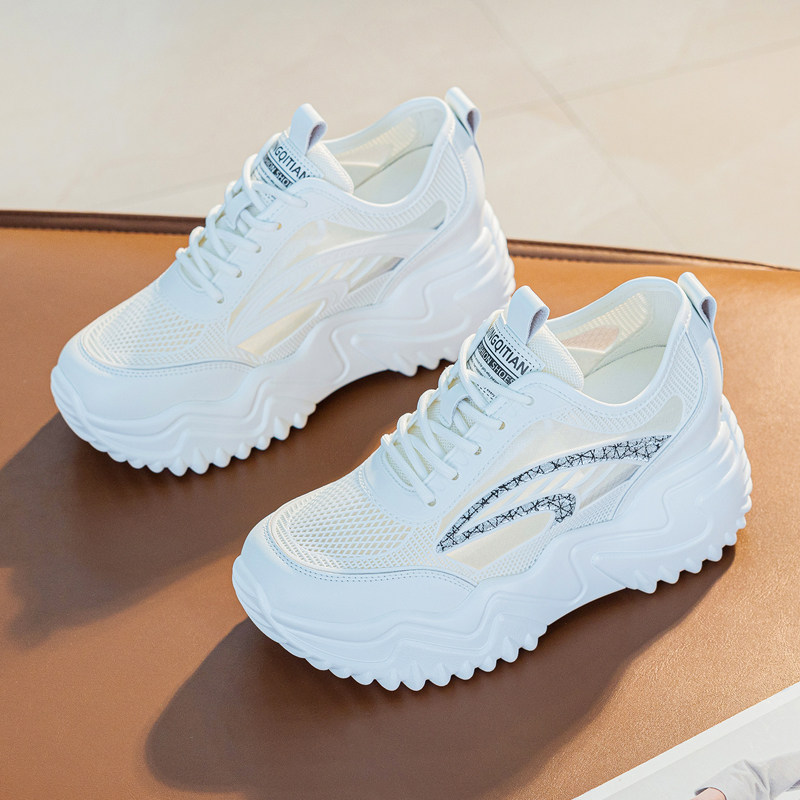 8cm内增高运动鞋2026新款夏款网面透气休闲鞋女款厚底小白鞋轻便
