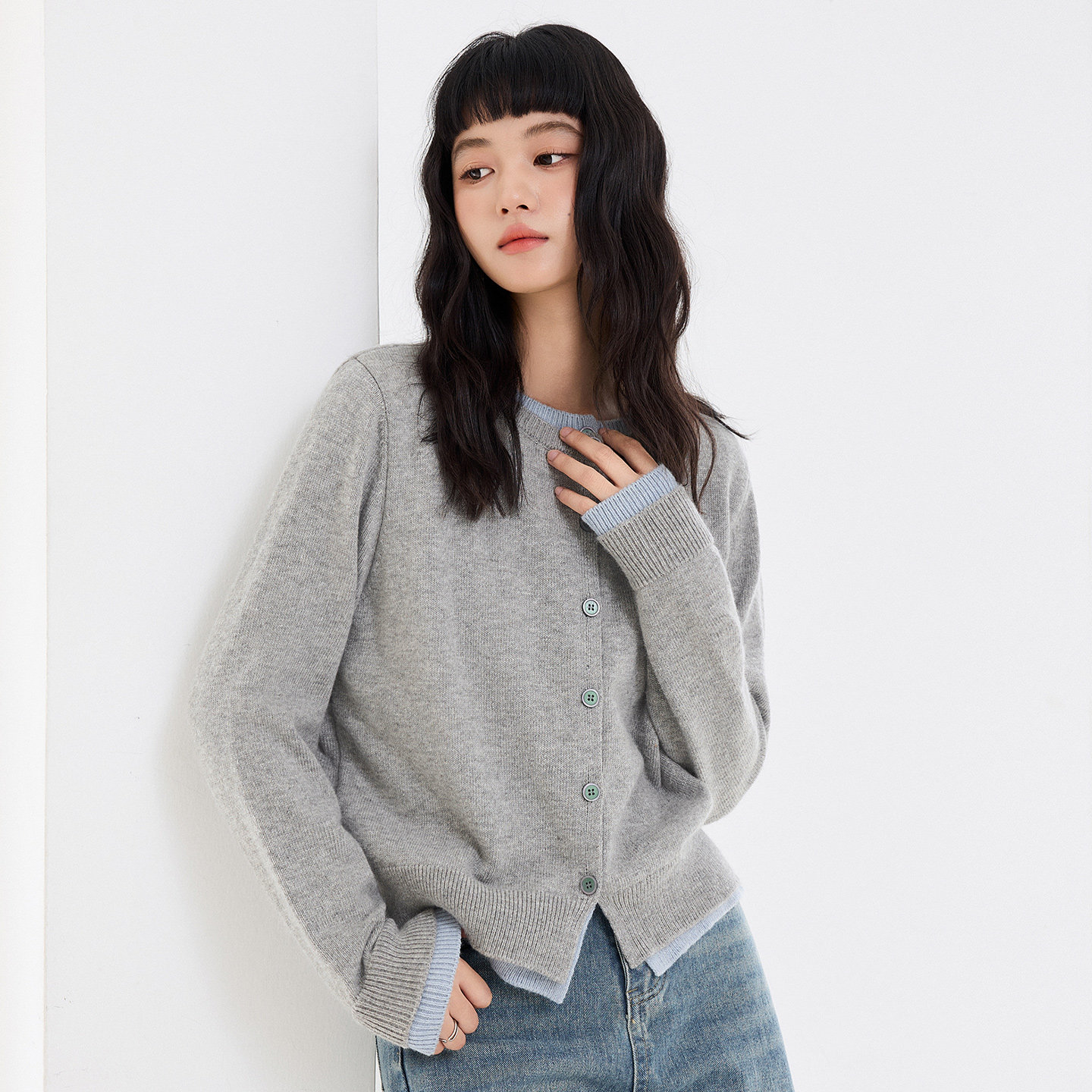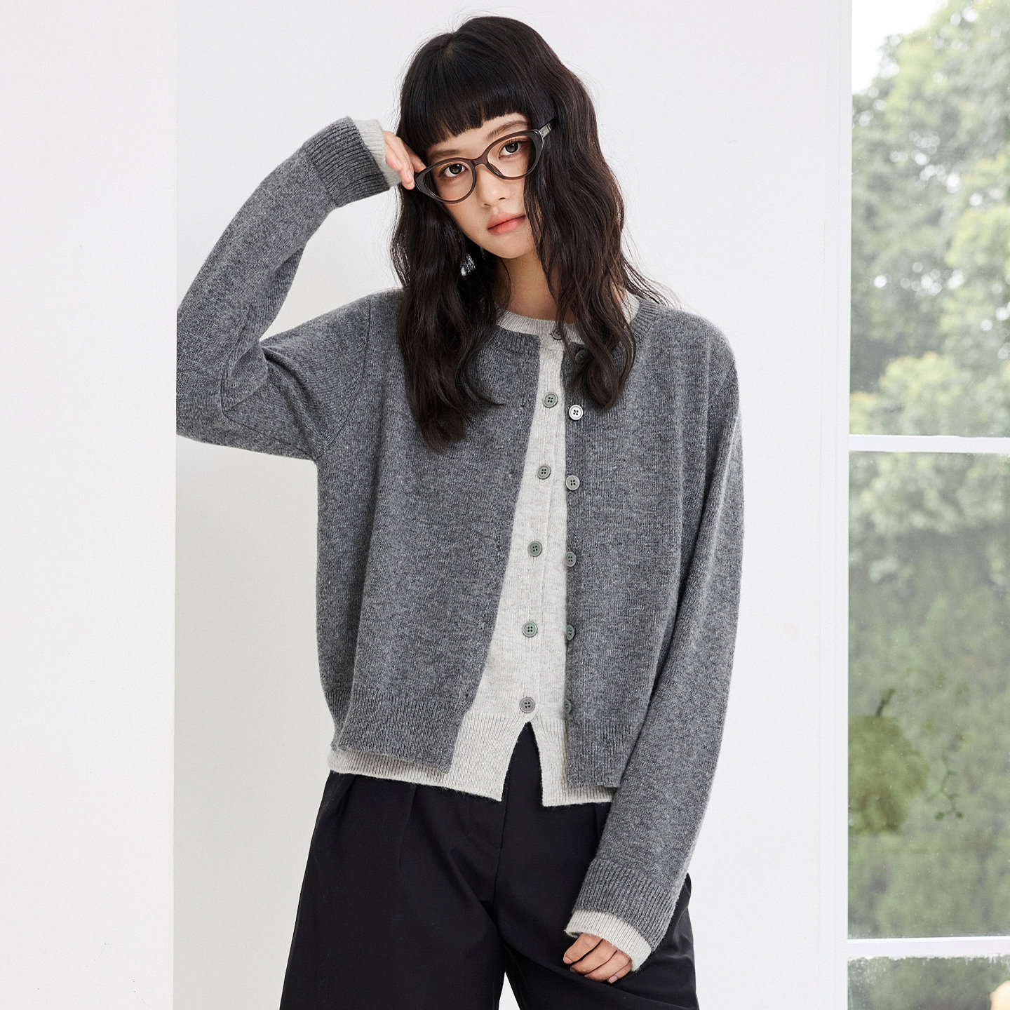 名创优品针织开衫外套女款2026新款冬加厚上衣小个子保暖毛衣女D